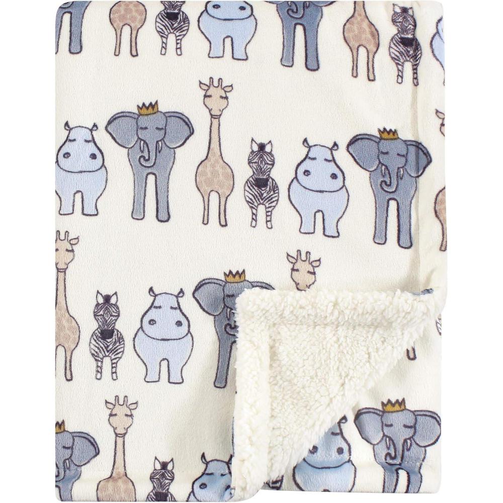 Hudson Baby Unisex Baby Plush Mink and Sherpa Blanket, Floral, One Size(Royal Safari)