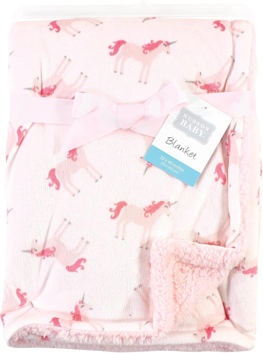 Hudson Baby Unisex Baby Plush Mink and Sherpa Blanket, Floral, One Size(Whimsical Unicorn)