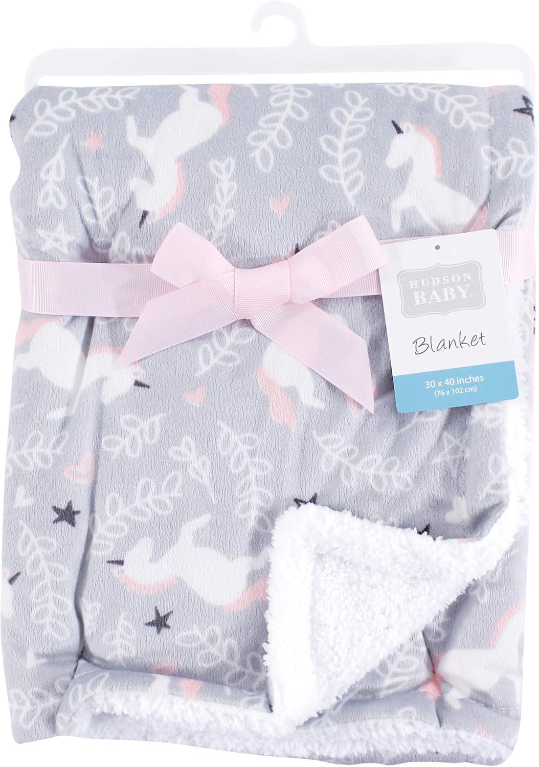 Hudson Baby Unisex Baby Plush Mink and Sherpa Blanket, Floral, One Size(Whimsical Unicorn)