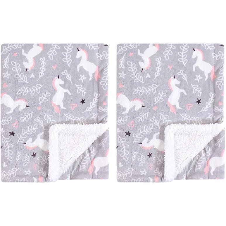 imageHudson Baby Unisex Baby Plush Mink and Sherpa Blanket Floral One SizeUnicorn