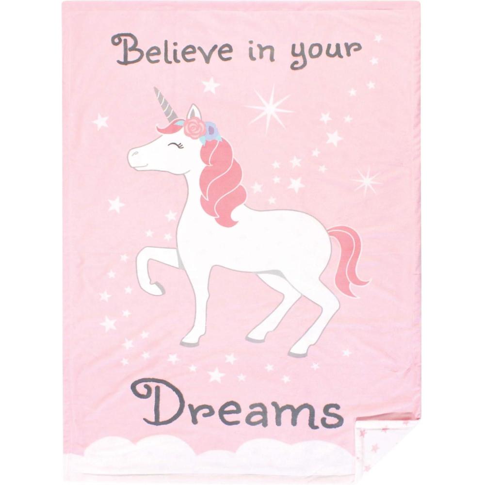 Hudson Baby Unisex Baby Plush Mink Blanket, Powder Blue, One Size(Unicorn Dreams)
