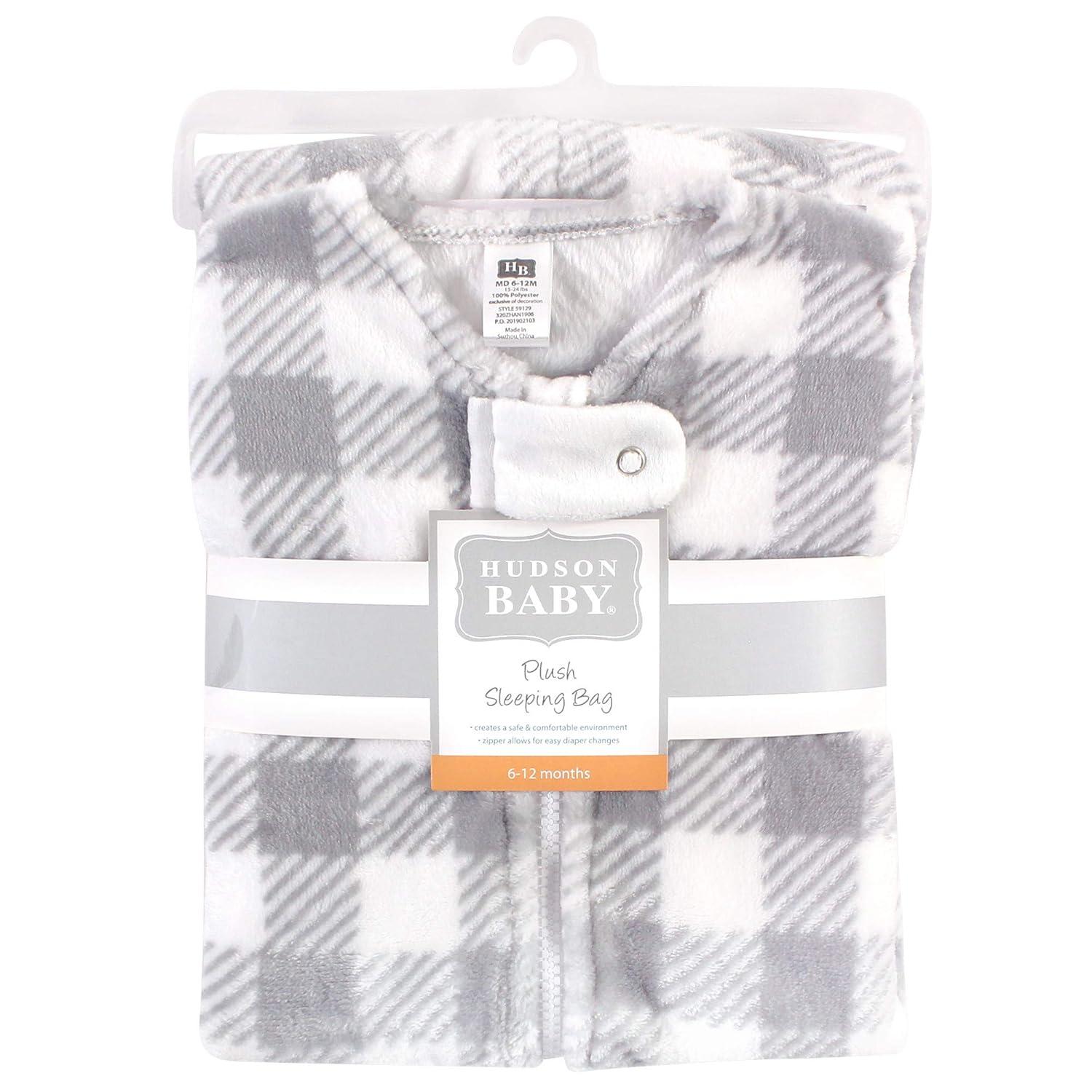 Hudson Baby Unisex Baby Plush Sleeping Bag, Sack, Blanket, Boy Farm Animals Long Sleeve, 6-12 Months(Gray Plaid)