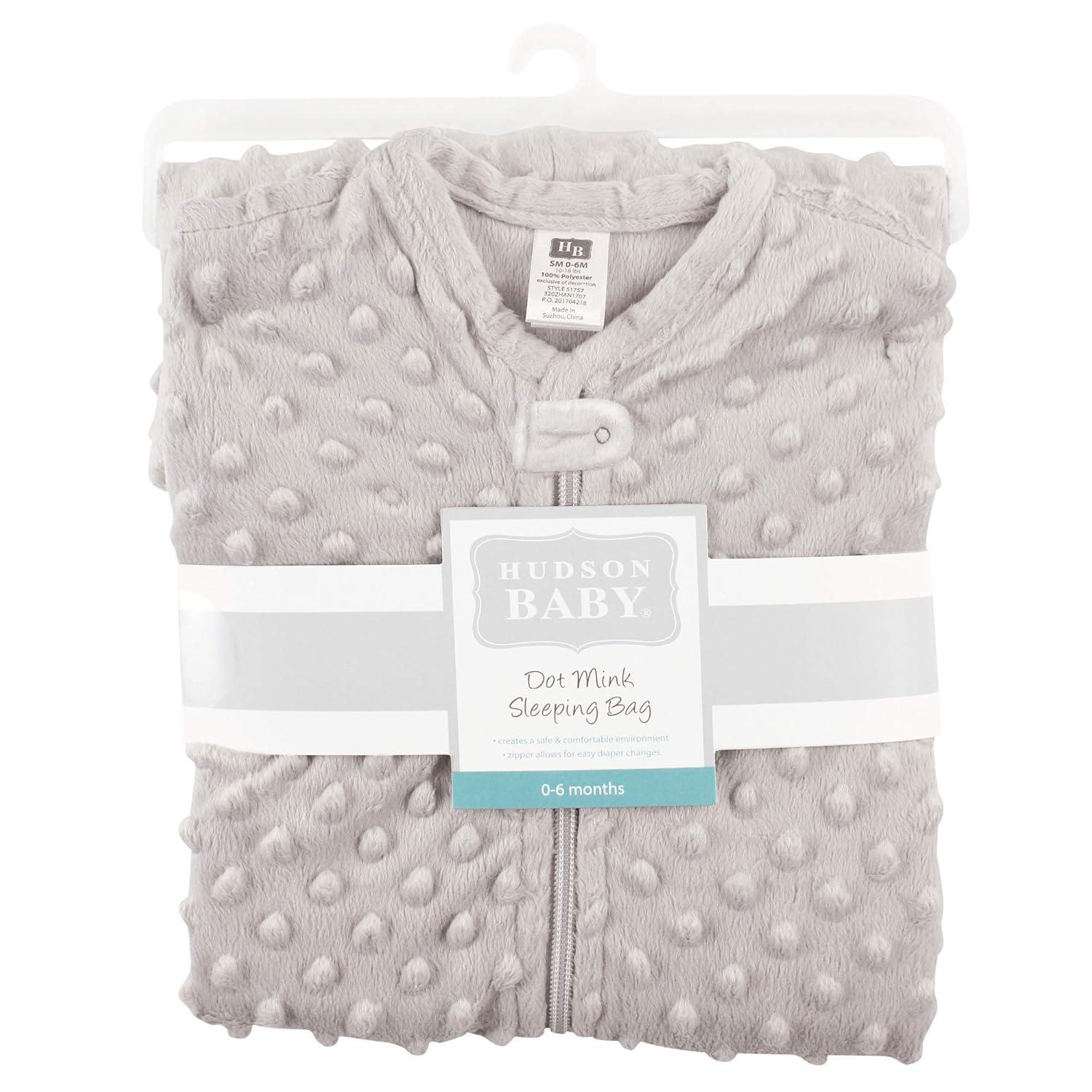 Hudson Baby Unisex Baby Plush Sleeping Bag, Sack, Blanket, Boy Farm Animals Long Sleeve, 6-12 Months(Light Gray Dot Mink)