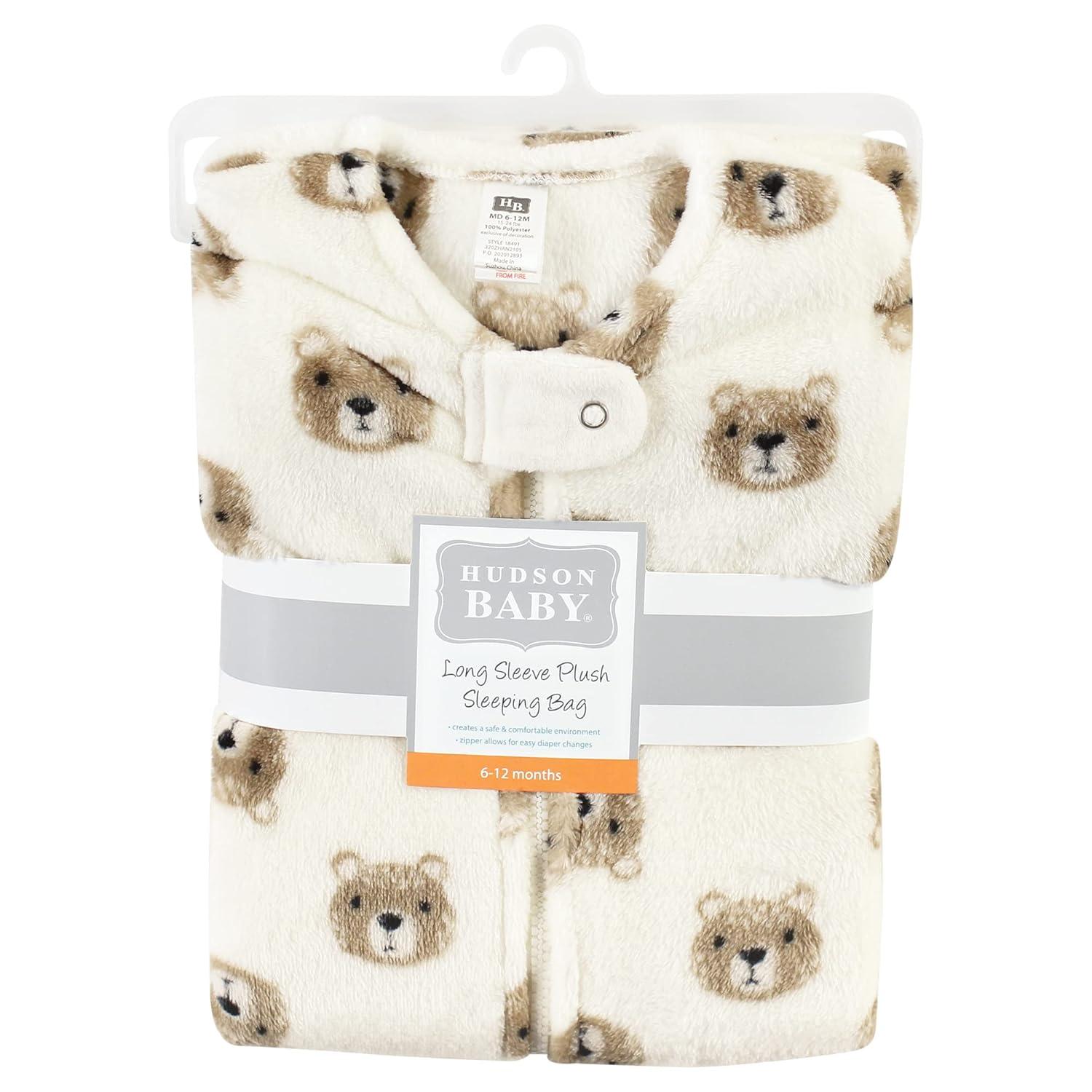 Hudson Baby Unisex Baby Plush Sleeping Bag, Sack, Blanket, Boy Farm Animals Long Sleeve, 6-12 Months(Long-sleeve Bear)