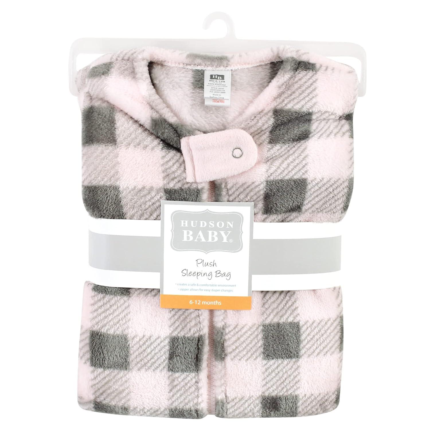 Hudson Baby Unisex Baby Plush Sleeping Bag, Sack, Blanket, Boy Farm Animals Long Sleeve, 6-12 Months(Sleeveless Pink Gray Plaid)