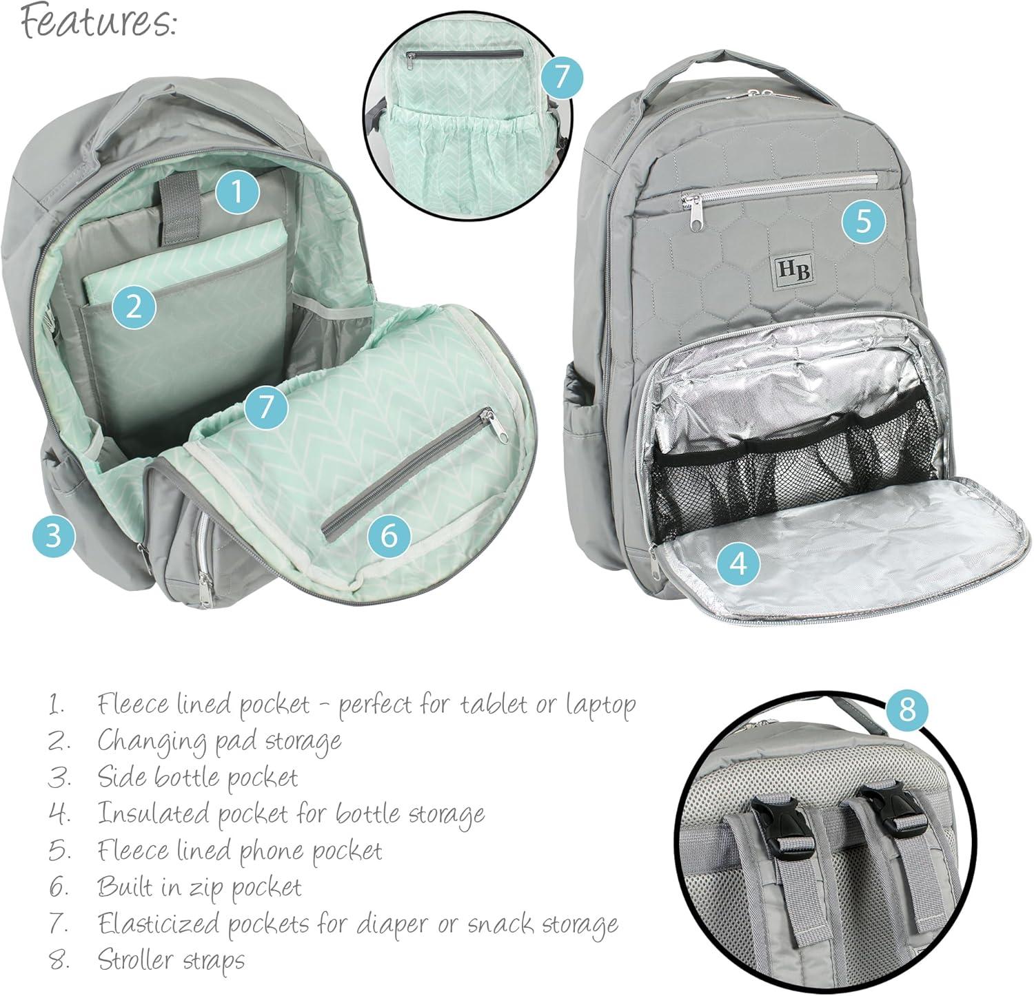 Hudson Baby Unisex Baby Premium Diaper Bag Backpack and Changing Pad(Gray)