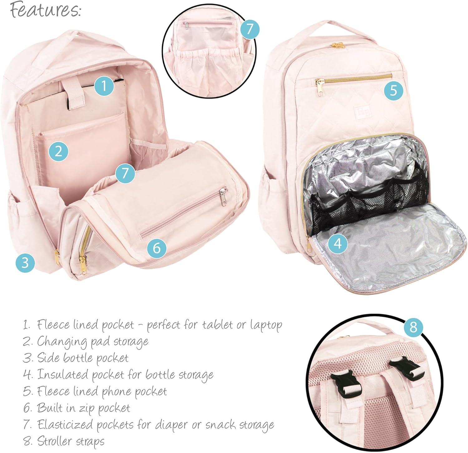 Hudson Baby Unisex Baby Premium Diaper Bag Backpack and Changing Pad(Powder Pink)