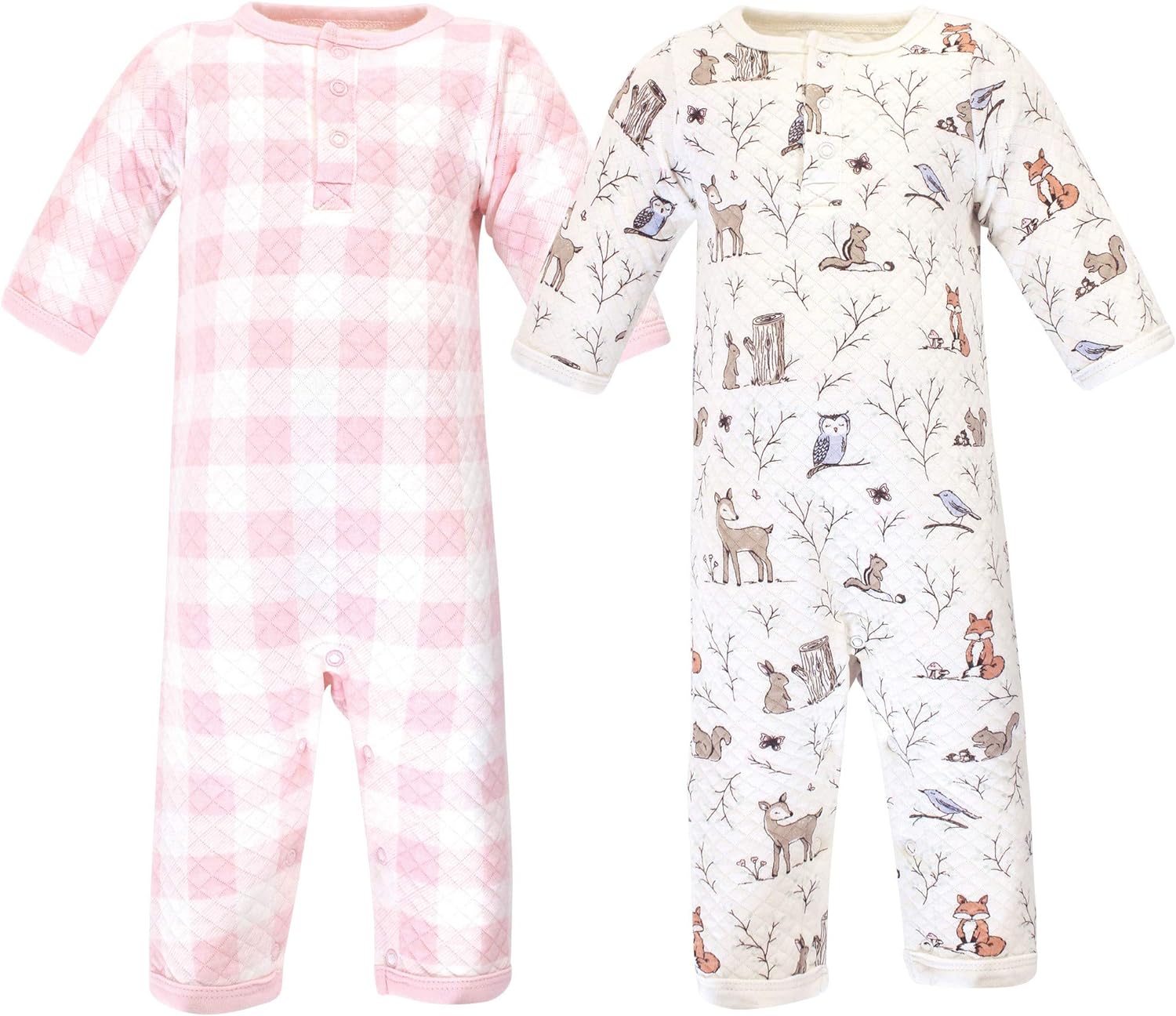 Hudson Baby quilted union suits and coveralls are an essential part of baby's wardrobe. Our 1-piece snap-up cotton union suit/coveralls are great for playtime, tummy time and daycare. Our union suits and coveralls are comfortable and cozy for all-day, everyday wear for your little one.