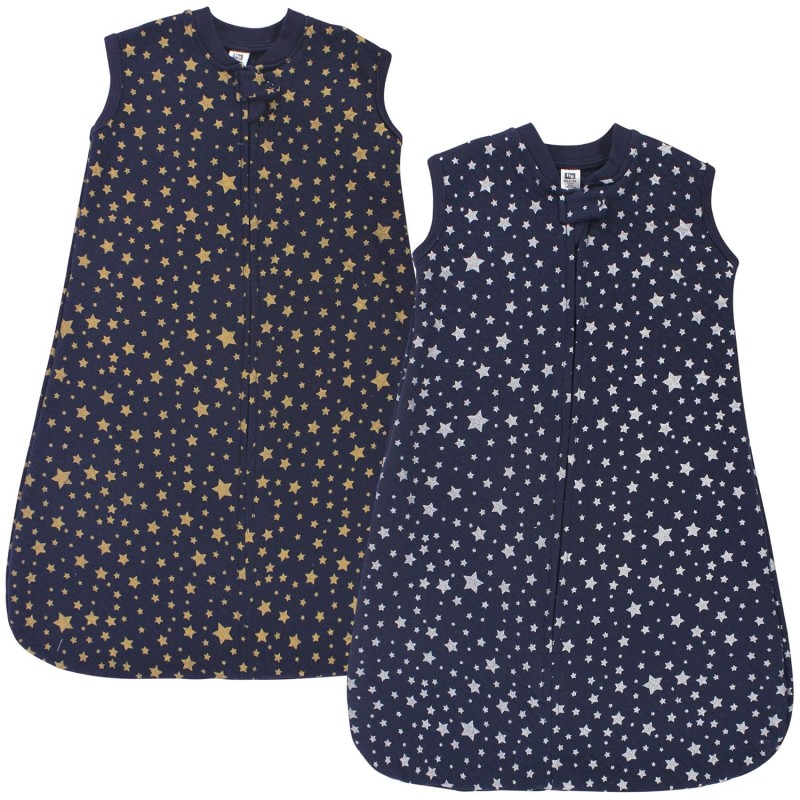Hudson Baby Unisex Baby Premium Quilted Sleeveless Sleeping Bag and Wearable Blanket, Space 2-Pack, 0-6 Months(Metallic Stars 12-18 Months)