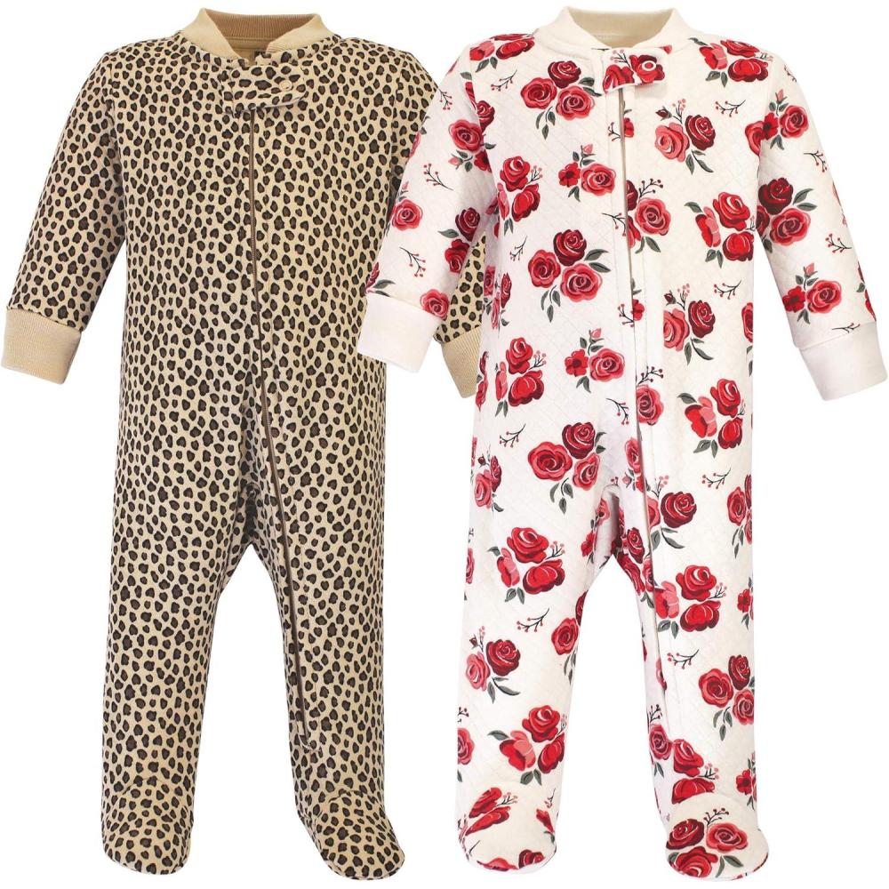Hudson Baby Unisex Baby Premium Quilted Zipper Sleep and Play(Rose Leopard)