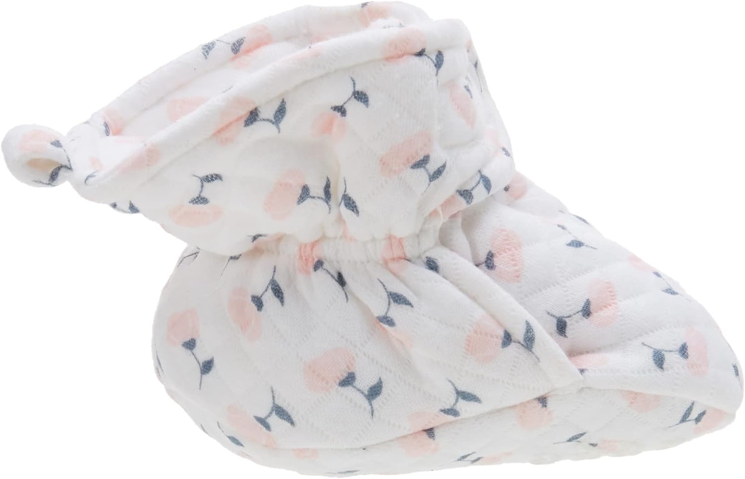 Hudson Baby quilted booties are comfortable, cozy baby booties made with quilted cotton material that will keep your little one's feet warm and comfortable. Our booties wrap around your baby's foot and fasten in the front with a velcro closure, so they are easy to put on, fasten and stay on. Our quilted booties feature non-skid soles to prevent your baby from slipping and falling when they start to walk and run.