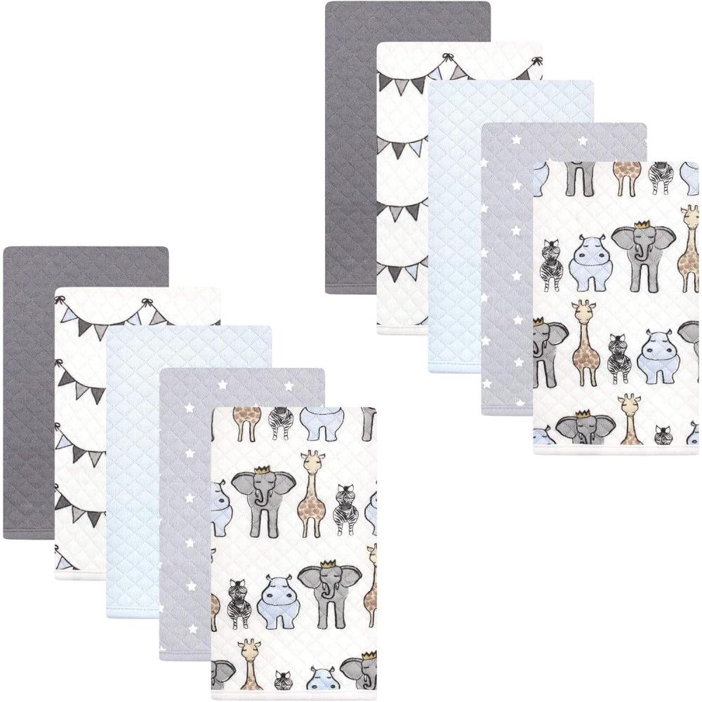 Hudson Baby premium quilted burp cloths are optimal for everyday messes and clean up with your new baby. Made with 100% premium quilted cotton, our burp cloths are soft and gentle on baby's skin, while being durable and machine washable for easy cleaning. Our burp cloths are sure to protect your clothes from drool, messy eating and spills while feeding, burping, and snuggling baby.