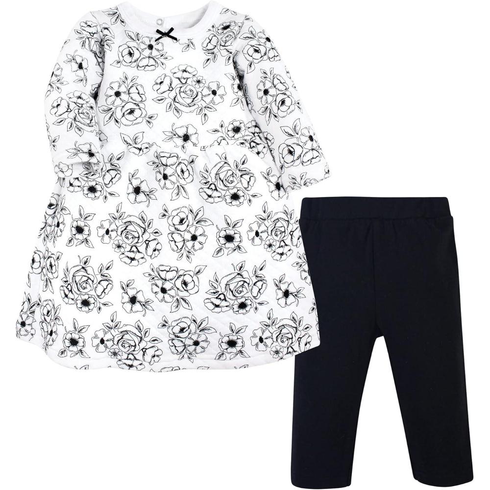 Hudson Baby Unisex Baby Quilted Cotton Dress and Leggings(Black Toile)