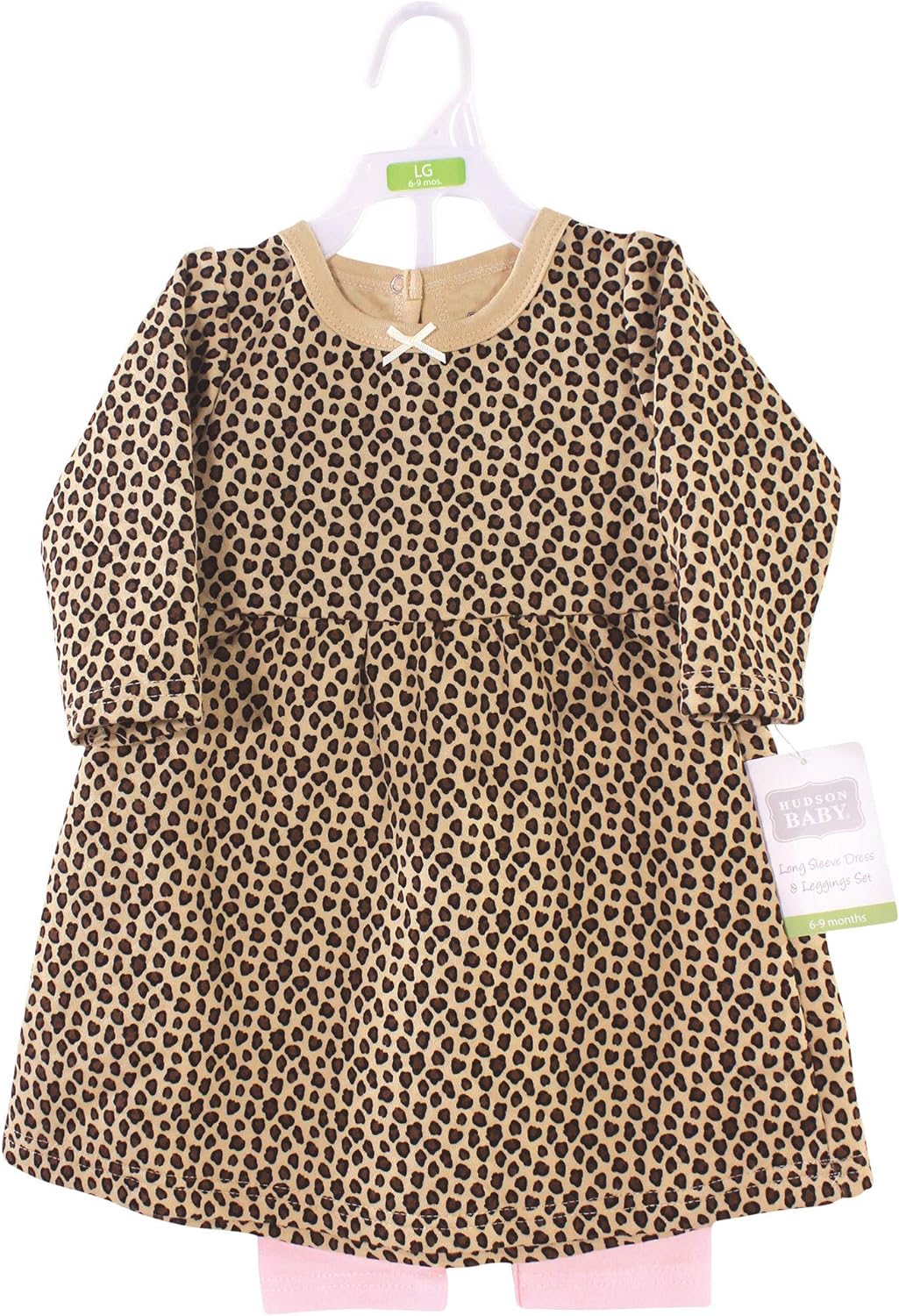 Hudson Baby Unisex Baby Quilted Cotton Dress and Leggings(Leopard Pink)