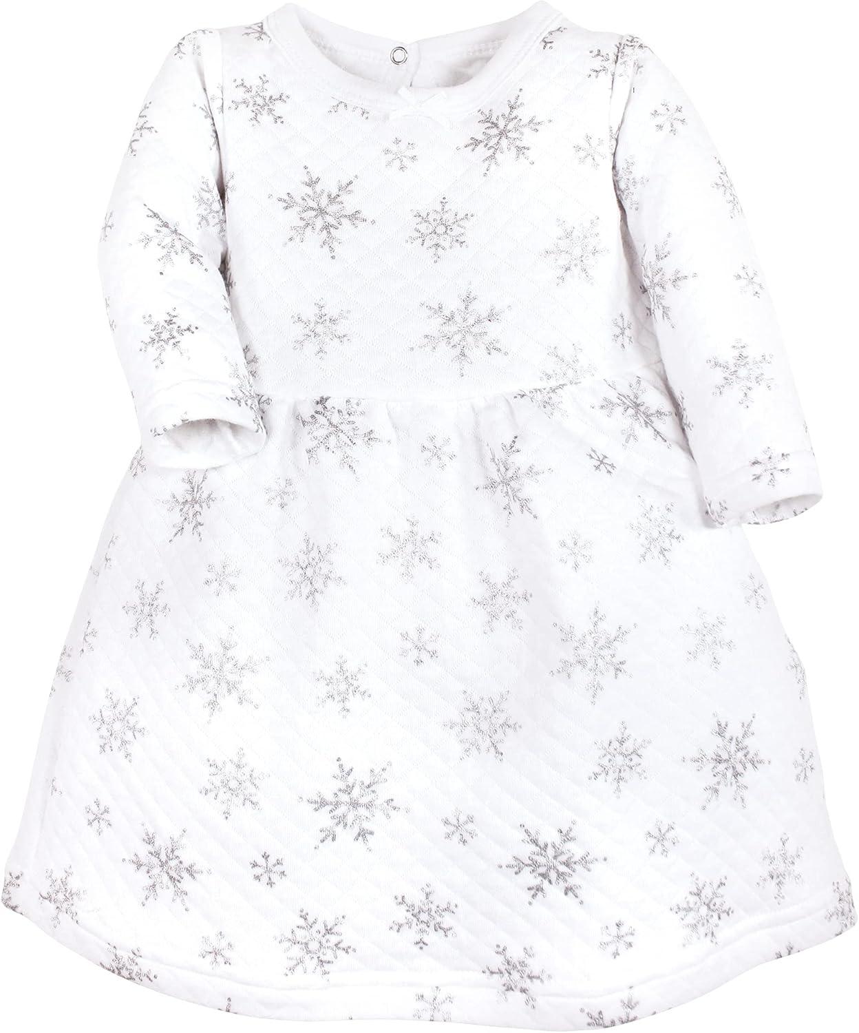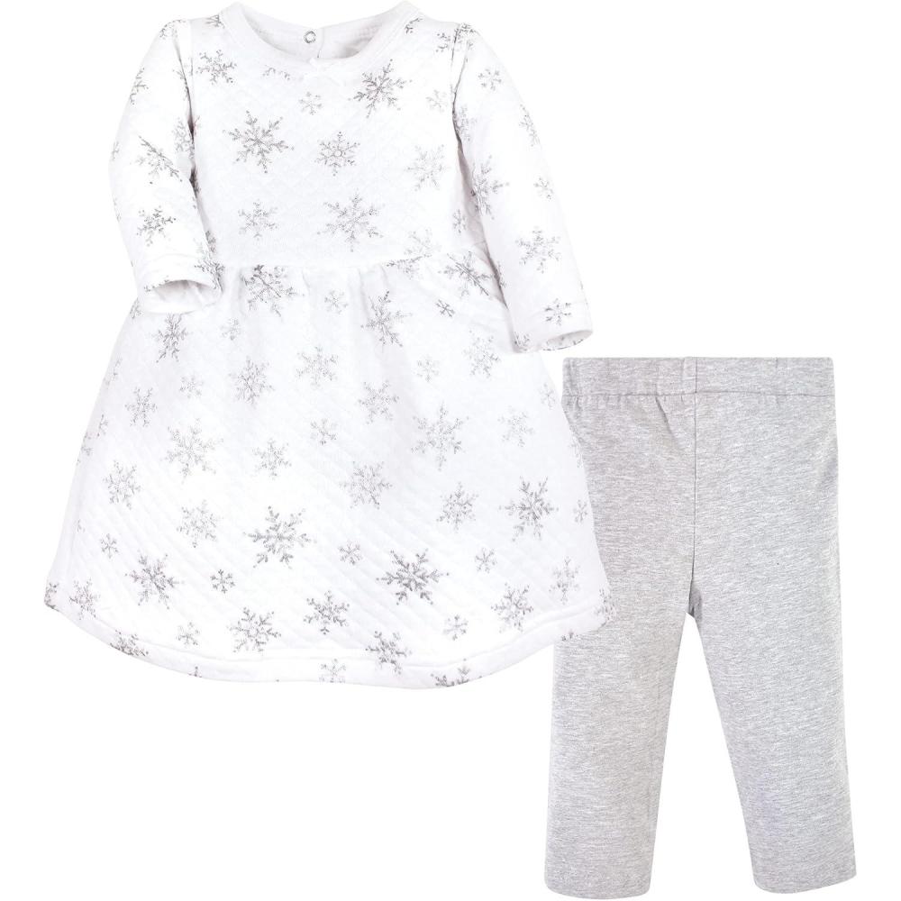 Hudson Baby Unisex Baby Quilted Cotton Dress and Leggings(Silver Snowflakes)