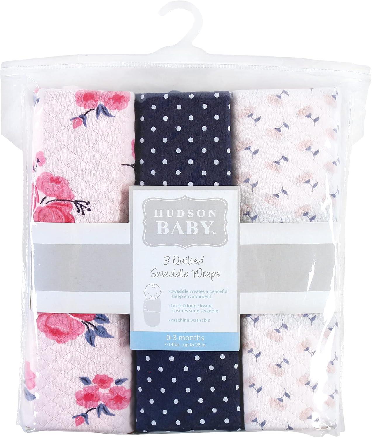 Hudson Baby Unisex Baby Quilted Cotton Swaddle Wrap 3pk, Football, 0-3 Months(Pink Navy Floral)