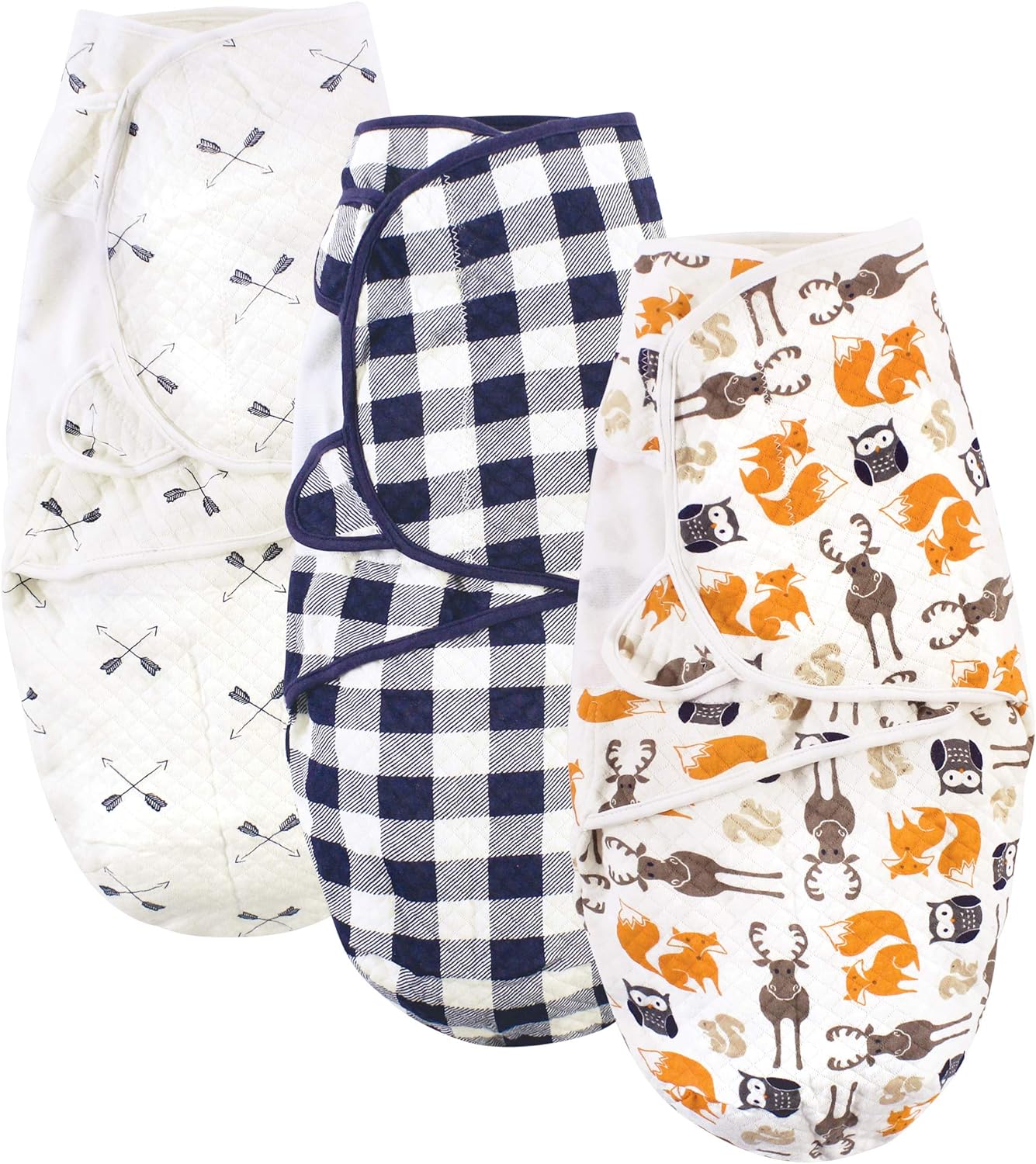 Hudson Baby Unisex Baby Quilted Cotton Swaddle Wrap 3pk(Boy Forest)