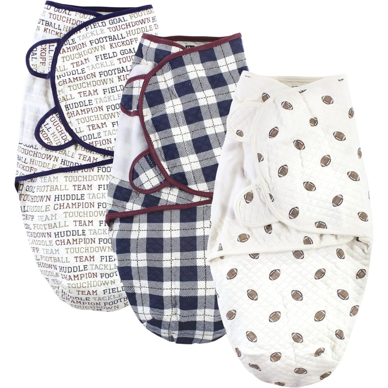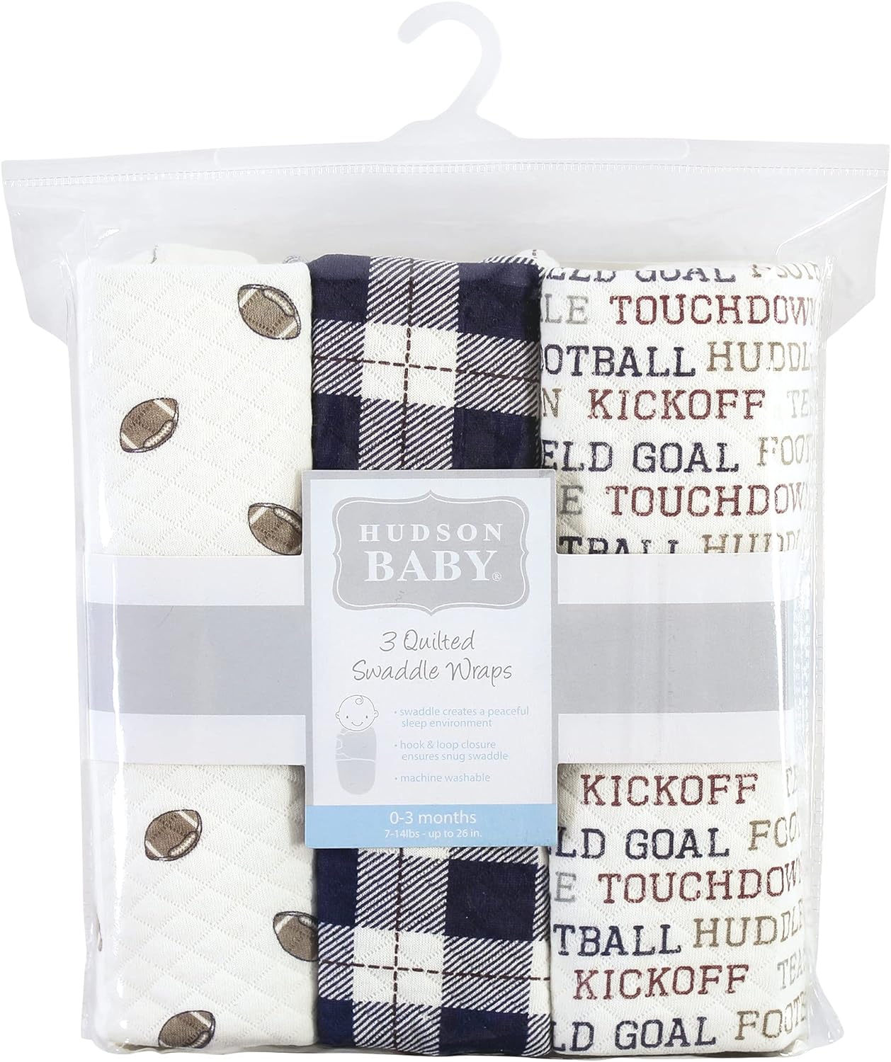 Hudson Baby Unisex Baby Quilted Cotton Swaddle Wrap 3pk(Football)