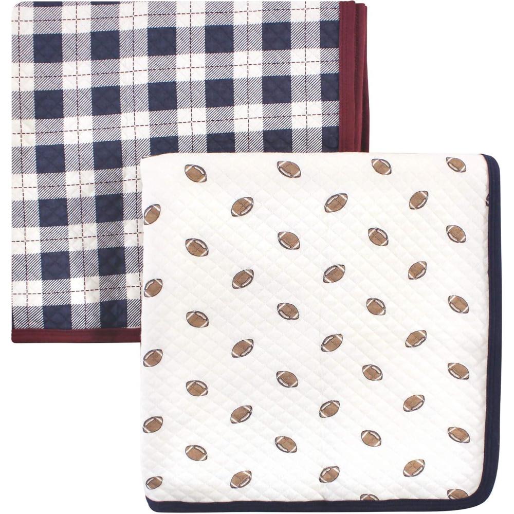 Hudson Baby Unisex Baby Quilted Multi-Purpose Swaddle, Receiving, Stroller Blanket, Moose 1-Pack, One Size(Football 2-pack)