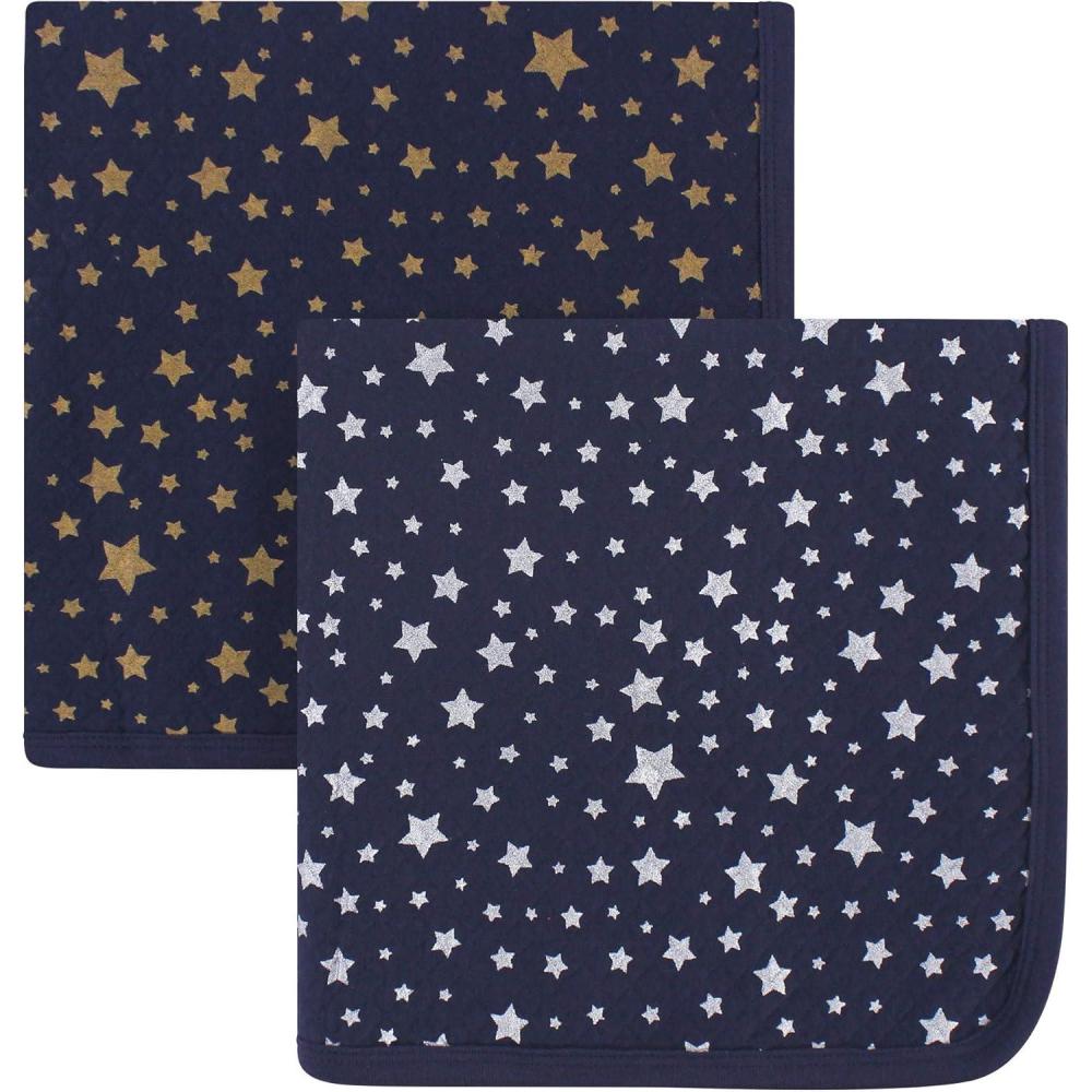 Hudson Baby Unisex Baby Quilted Multi-Purpose Swaddle, Receiving, Stroller Blanket, Moose 1-Pack, One Size(Metallic Stars 2-pack)