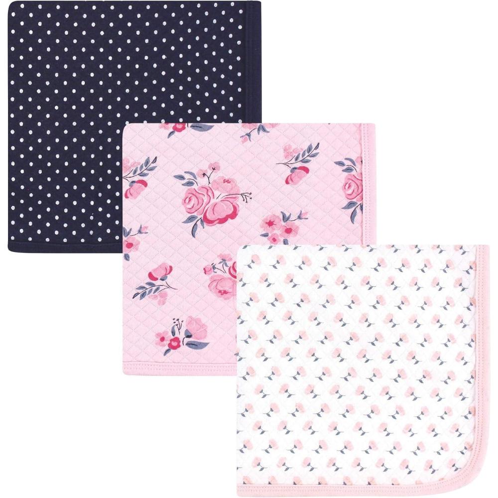 Hudson Baby Unisex Baby Quilted Multi-Purpose Swaddle, Receiving, Stroller Blanket, Moose 1-Pack, One Size(Pink Navy Floral 3-pack)