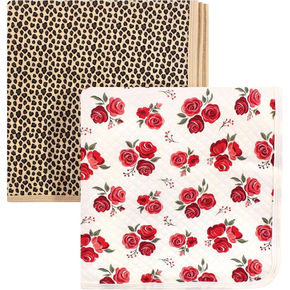 Hudson Baby Unisex Baby Quilted Multi-Purpose Swaddle, Receiving, Stroller Blanket, Moose 1-Pack, One Size(Rose Leopard 2-pack)