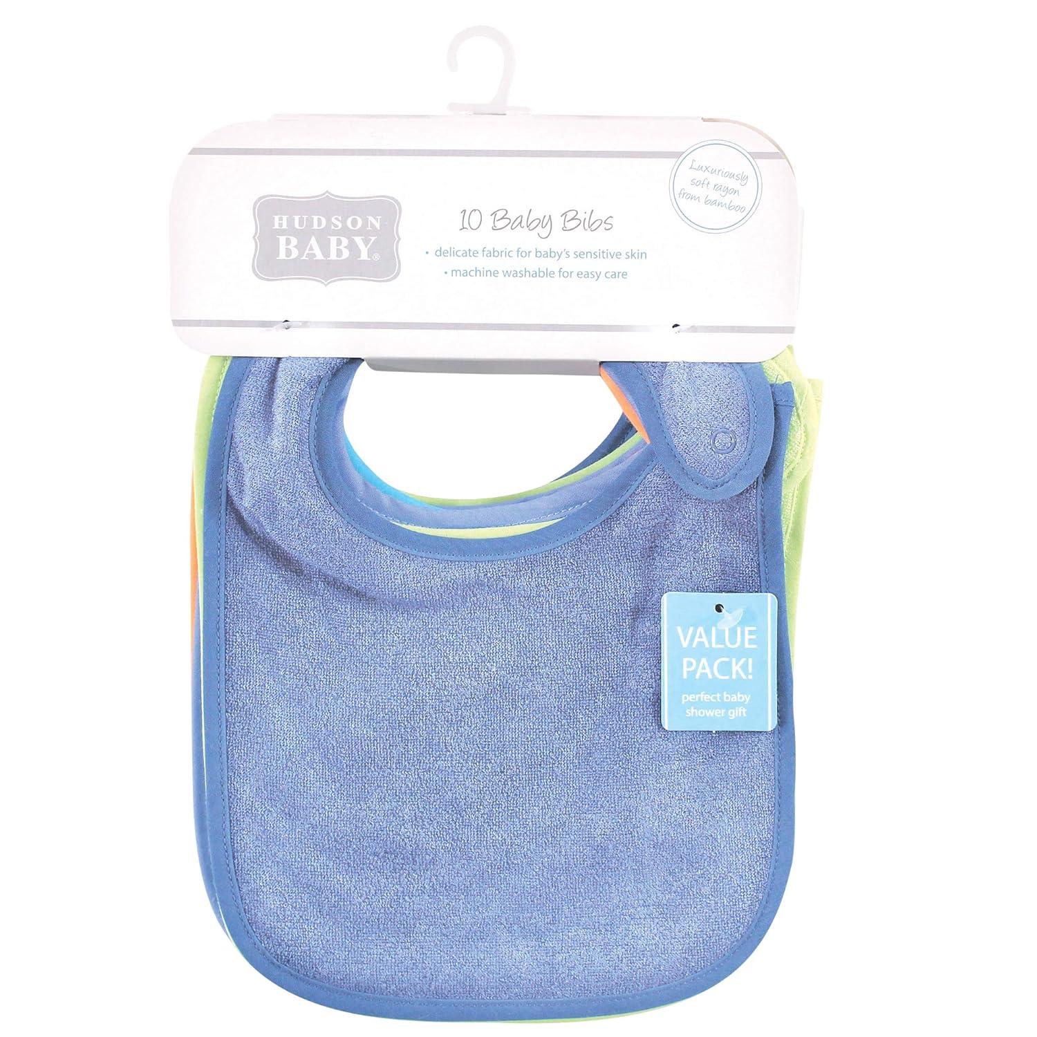 Hudson Baby rayon drooler bibs are a great set of value bibs that absorb your baby's drools and spills. Our bibs feature fun colors of everyday essential bibs that are soft, large and absorbent. Our bibs will protect your little one's adorable outfits from mishaps.