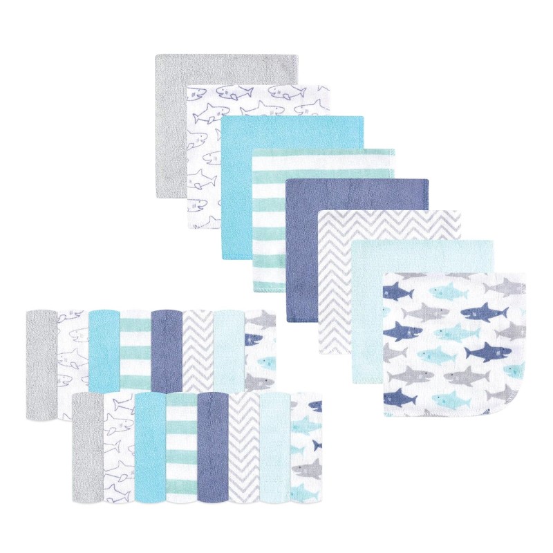 Hudson Baby Unisex Baby Rayon from Bamboo Washcloth Bundle, Sharks, One Size(Sharks One Size)