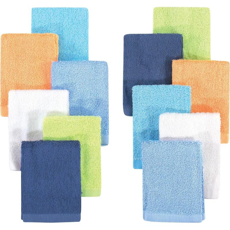 Hudson Baby Unisex Baby Rayon from Bamboo Woven Washcloths 12pk, Soft Neutral, One Size(Blue Orange Lime)