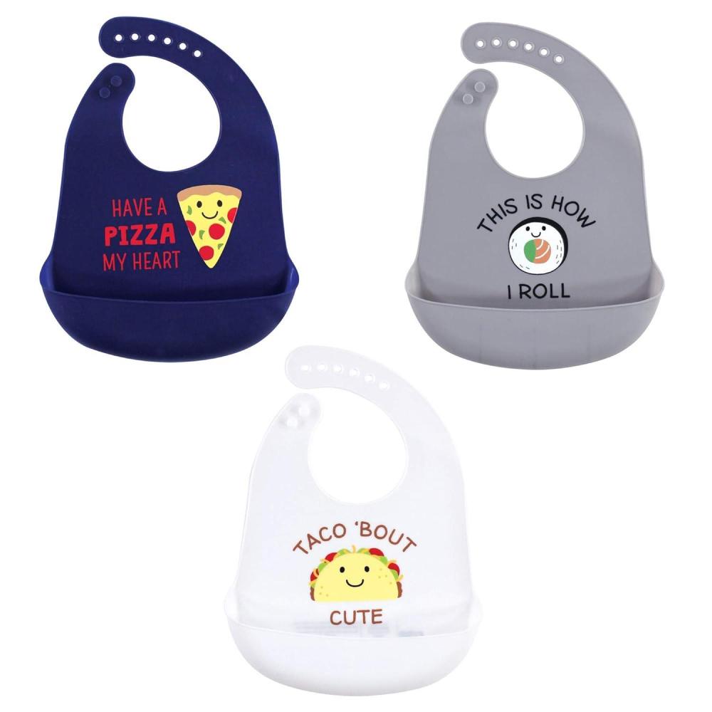Hudson Baby Unisex Baby Silicone Bibs, Fancy, One Size(Pizza)