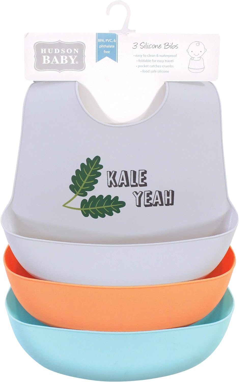 Hudson Baby Unisex Baby Silicone Bibs(Kale Yeah)