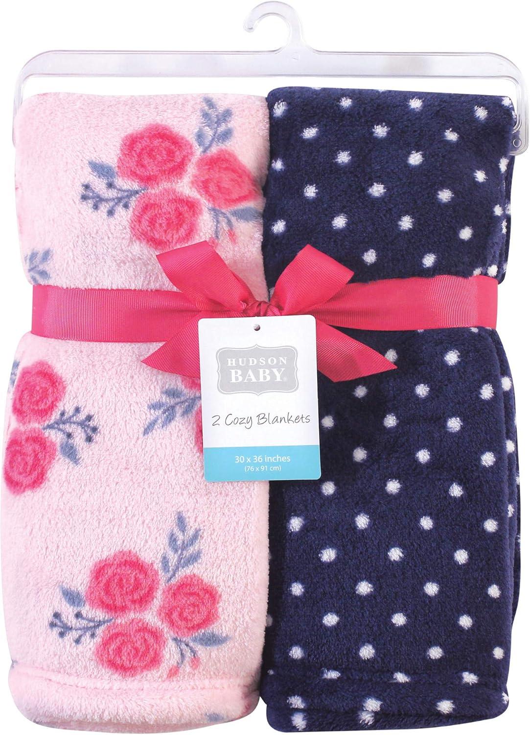 Hudson Baby Unisex Baby Silky Plush and Coral Fleece Blanket, Christmas Tree Truck, 30×36 inches(Pink Navy Roses)