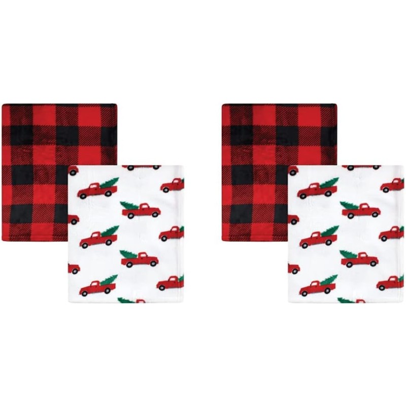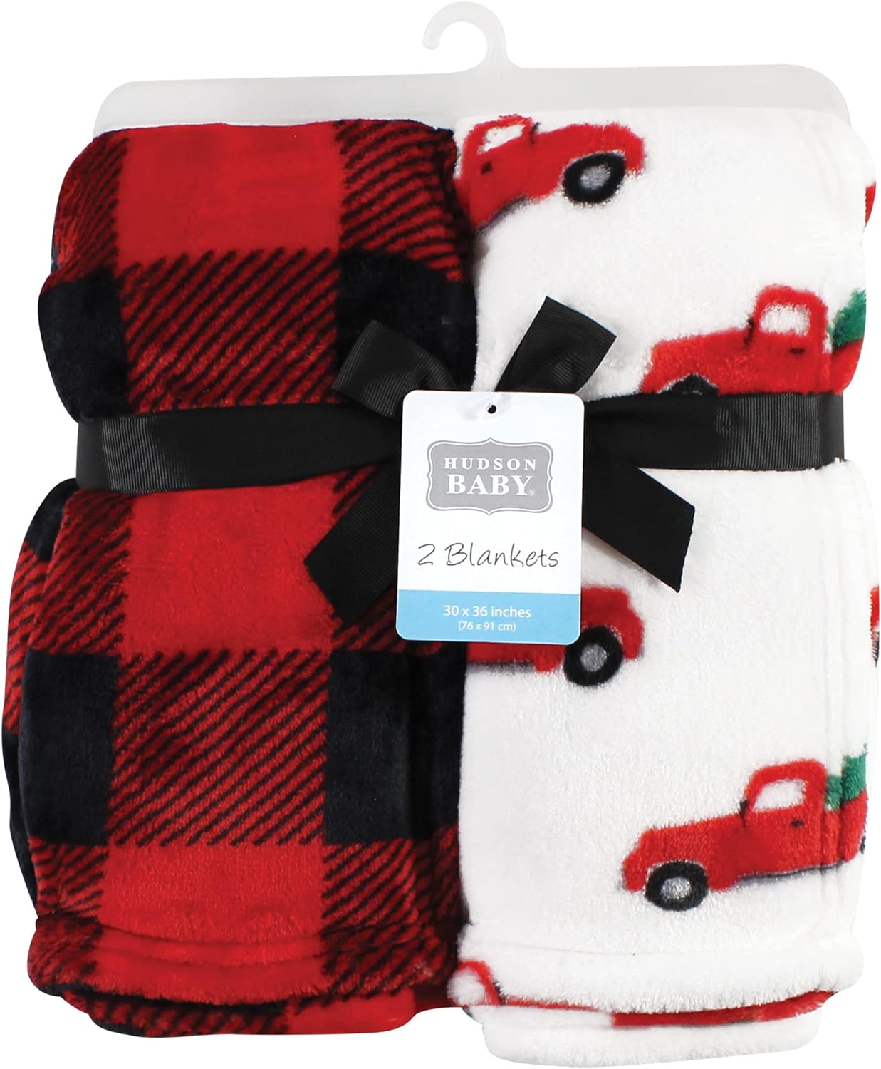 Hudson Baby Unisex Baby Silky Plush and Coral Fleece Blanket, Pink Navy Roses, 30×36 inches (Pack of 2)(Christmas Tree Truck 30×36 Inch (Pack of 2))