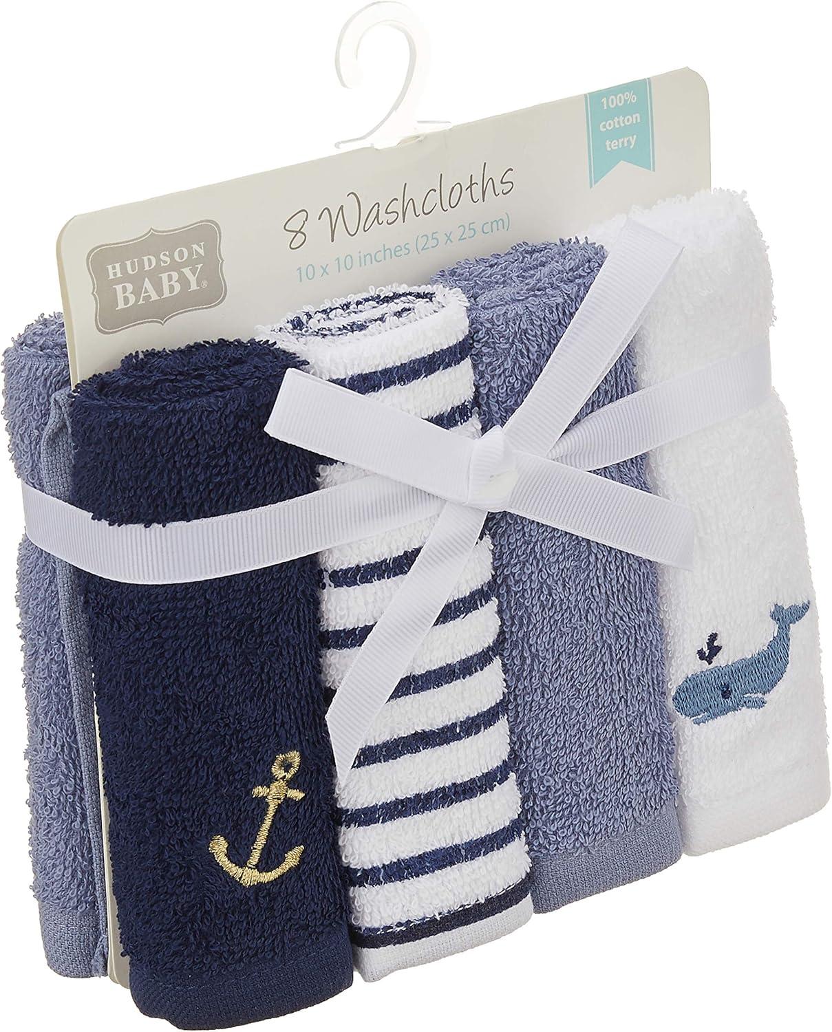 Hudson Baby Unisex Baby Super Soft Cotton Washcloths, Elephants, One Size(Anchor)