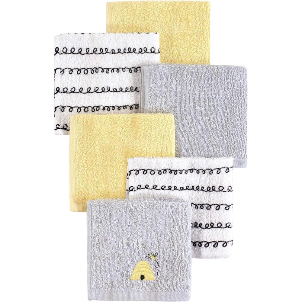 Hudson Baby Unisex Baby Super Soft Cotton Washcloths, Elephants, One Size(Bee)