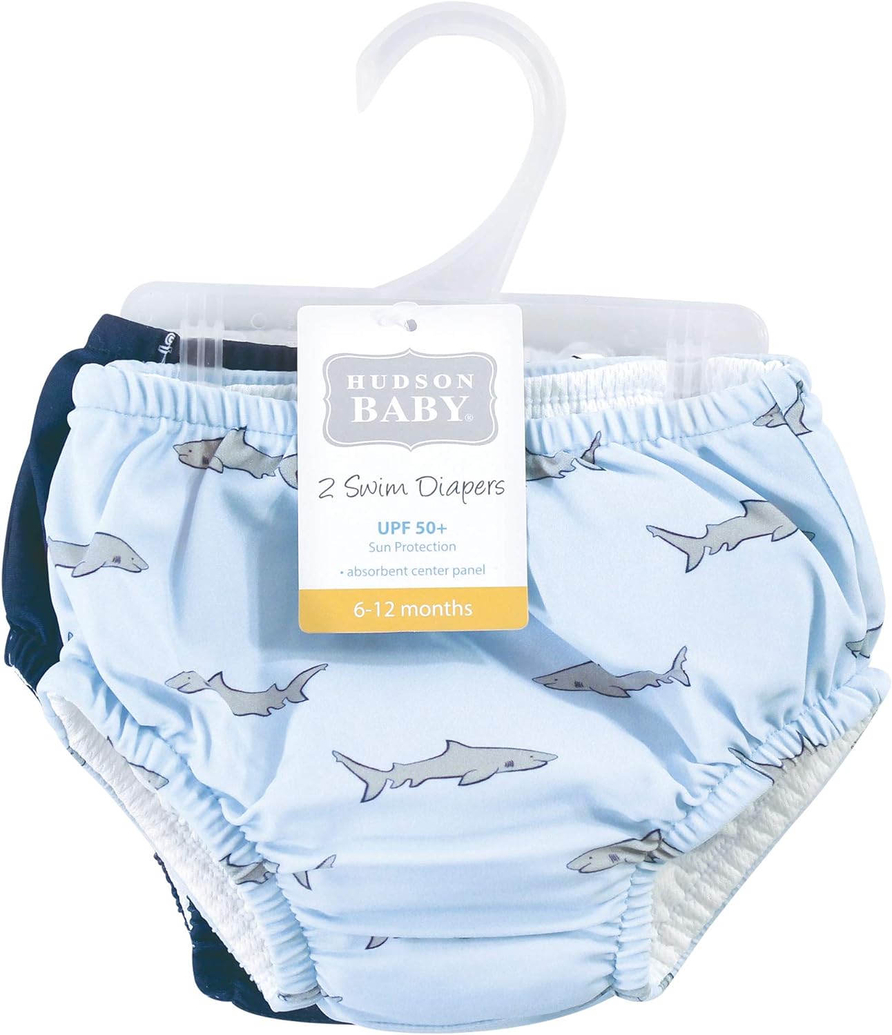 Hudson Baby Unisex Baby Swim Diapers, Pink Lemons, 12-18 Months(4T Blue Gray Shark)