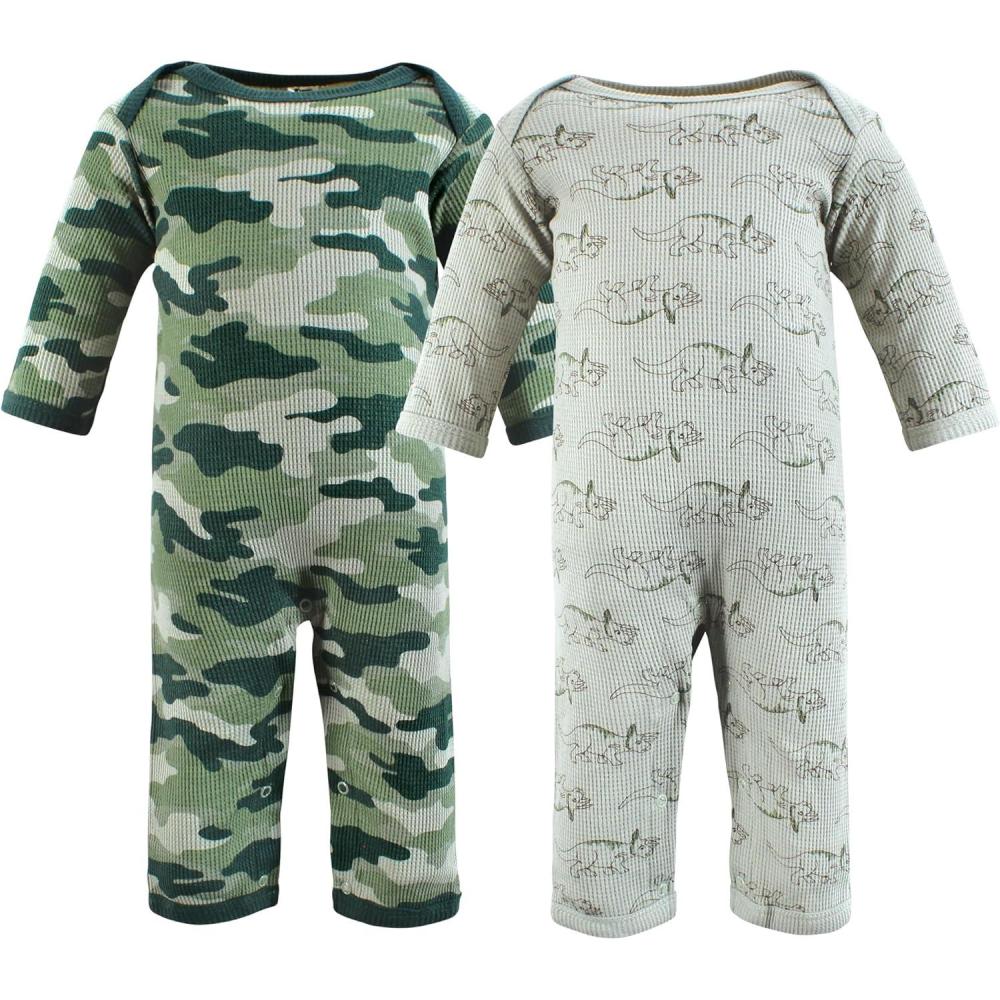 Hudson Baby Unisex Baby Thermal Coveralls 2pk, Creative Rainbows(Sage Dinosaur)