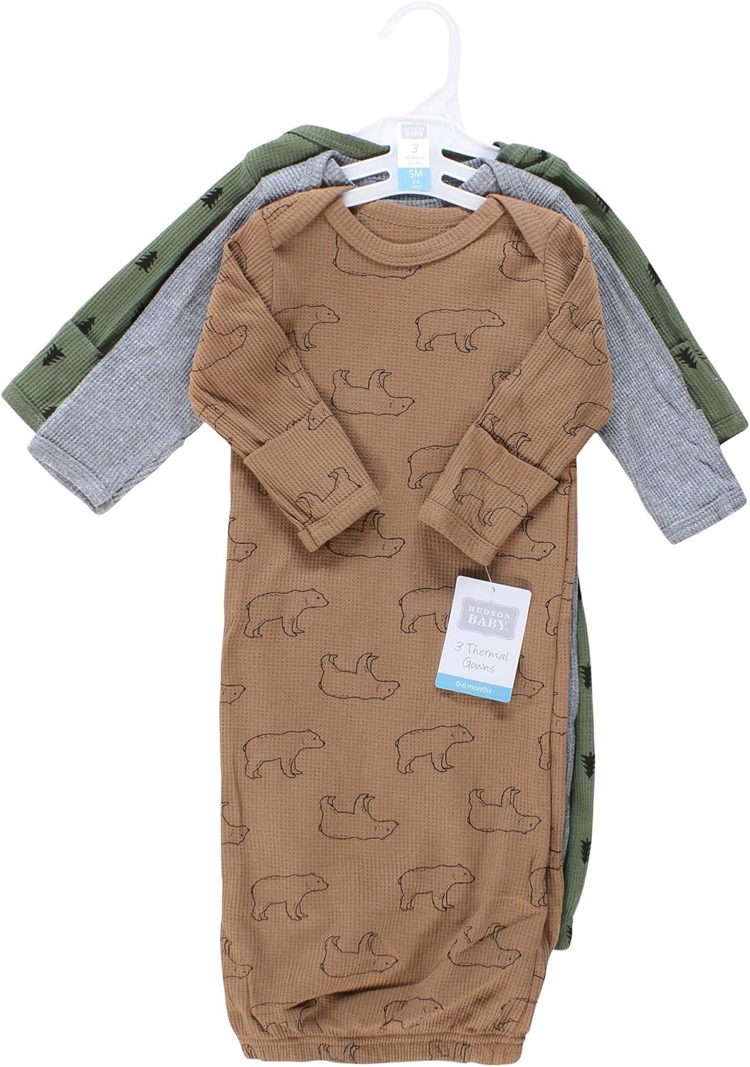 Hudson Baby cotton thermal gowns are super comfortable and cozy and feature playful patterns for sweet dreams. An elastic band at the bottom and a lap neck make dressing and diaper changes simple. Our thermal fabric will keep your little one feeling warm and snug through the night.