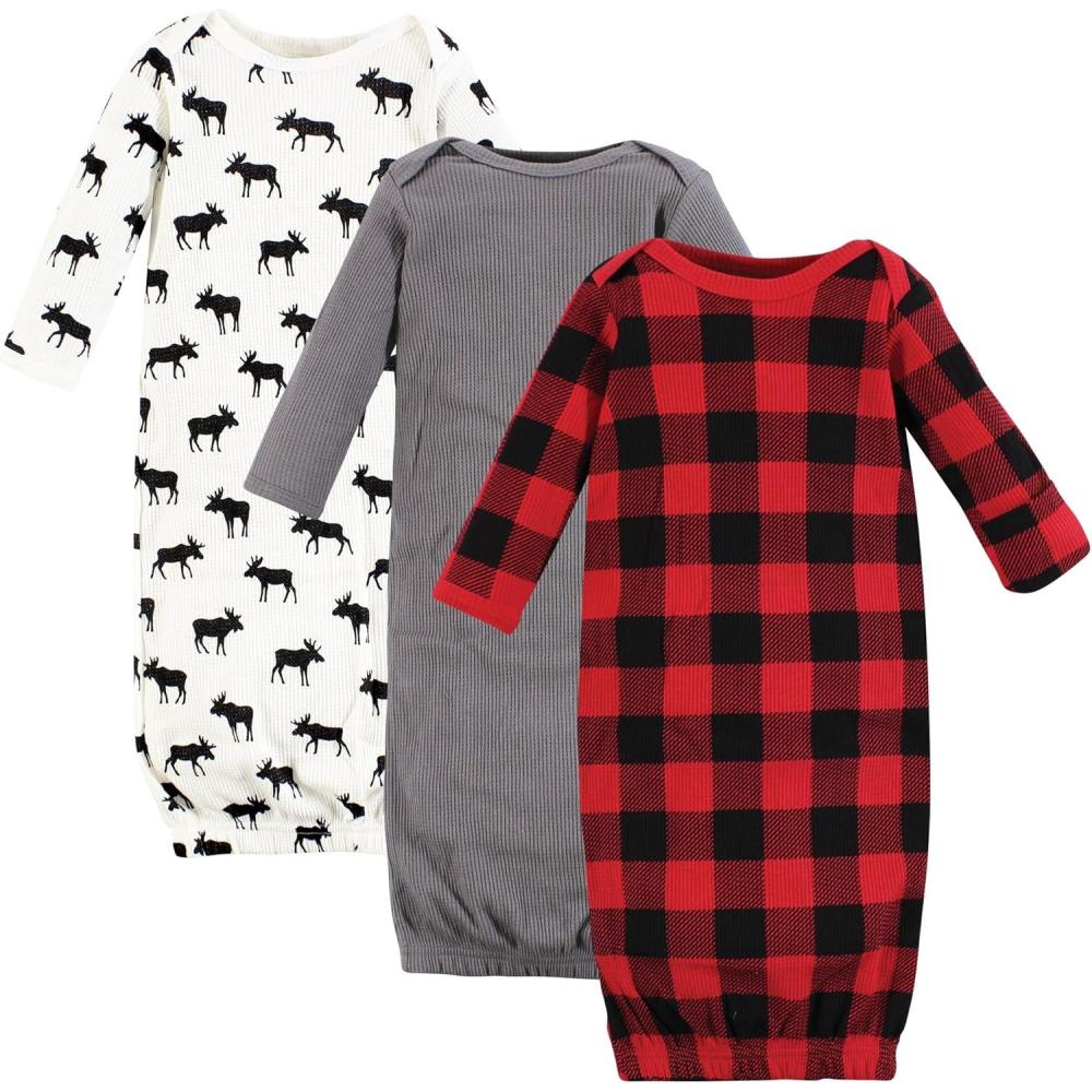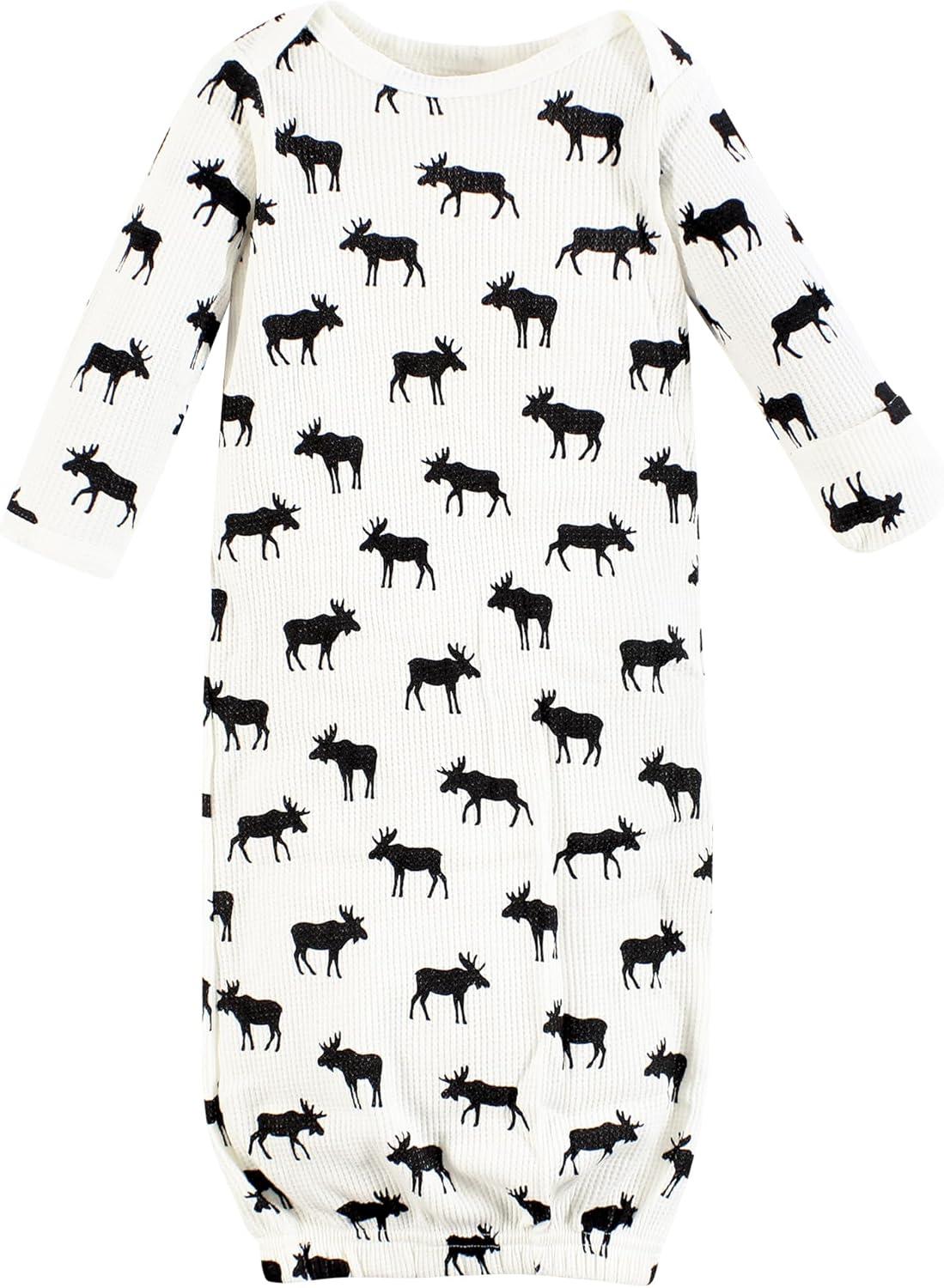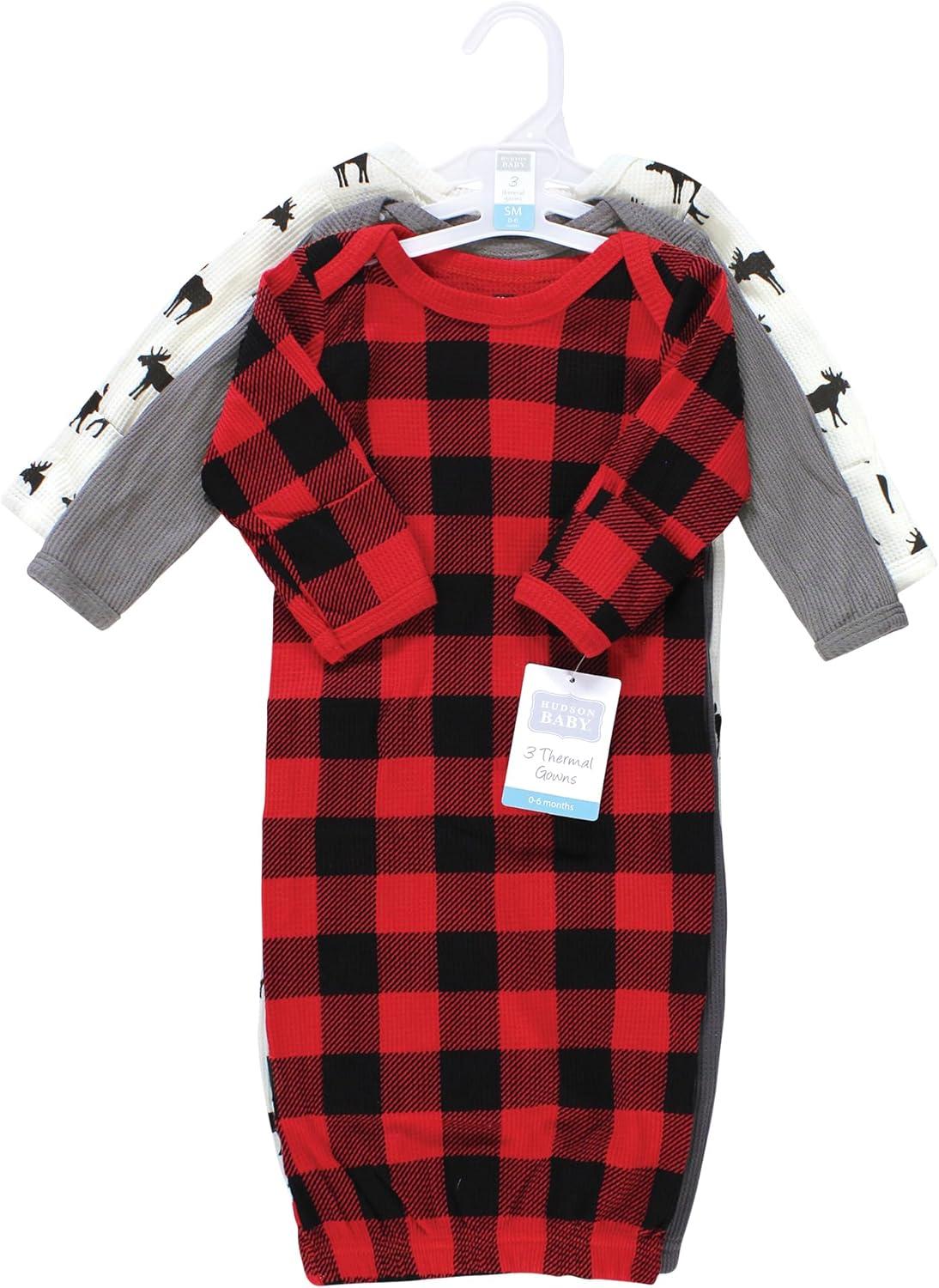 Hudson Baby Unisex Baby Thermal Gown(Buffalo Plaid Moose)