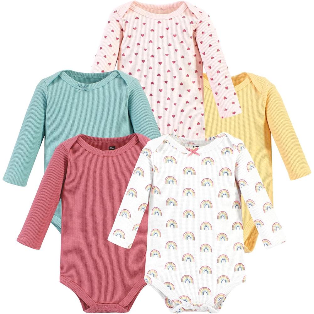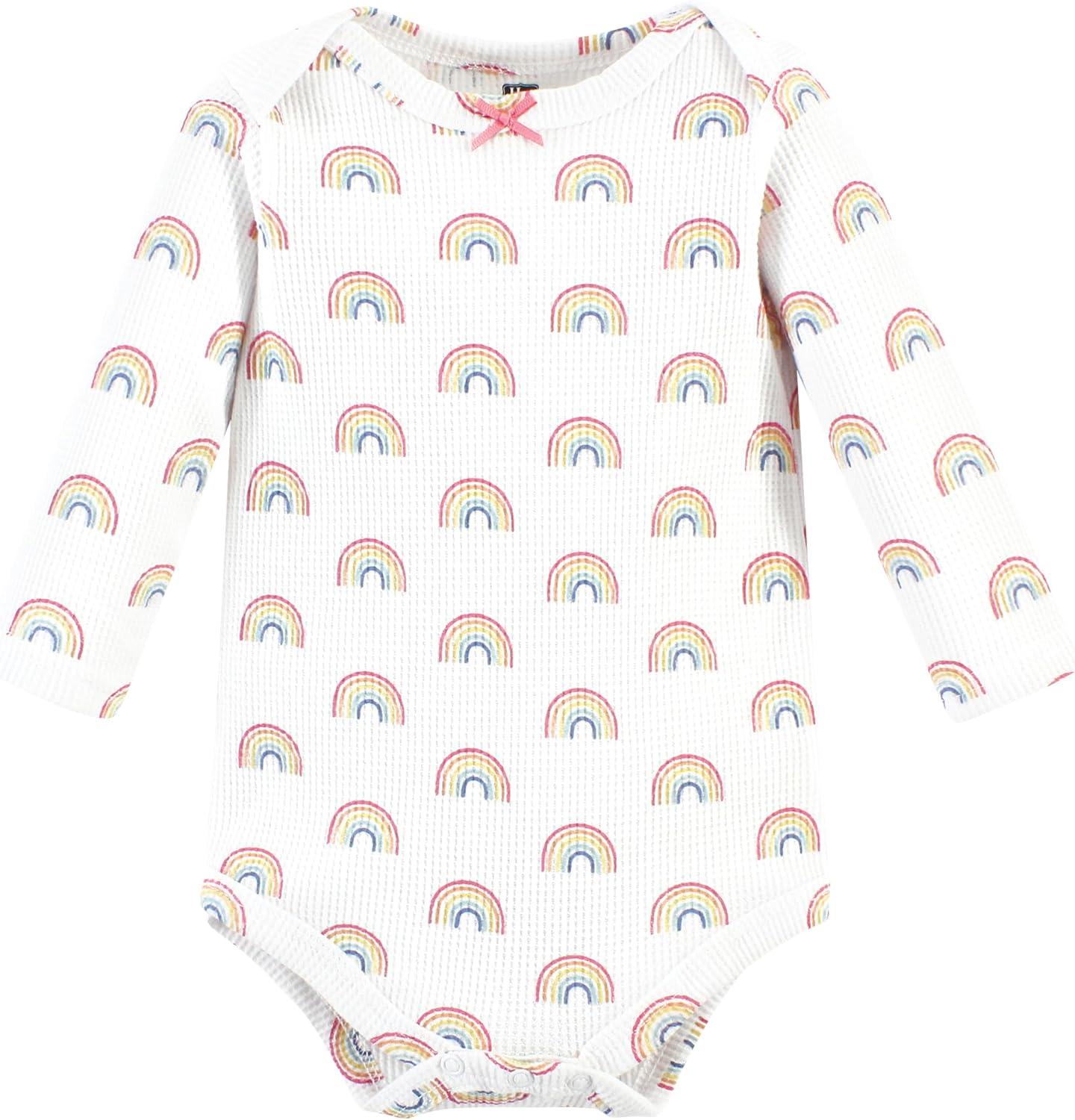 Hudson Baby Unisex Baby Thermal Long Sleeve Bodysuits, Snowflake(Creative Rainbows)
