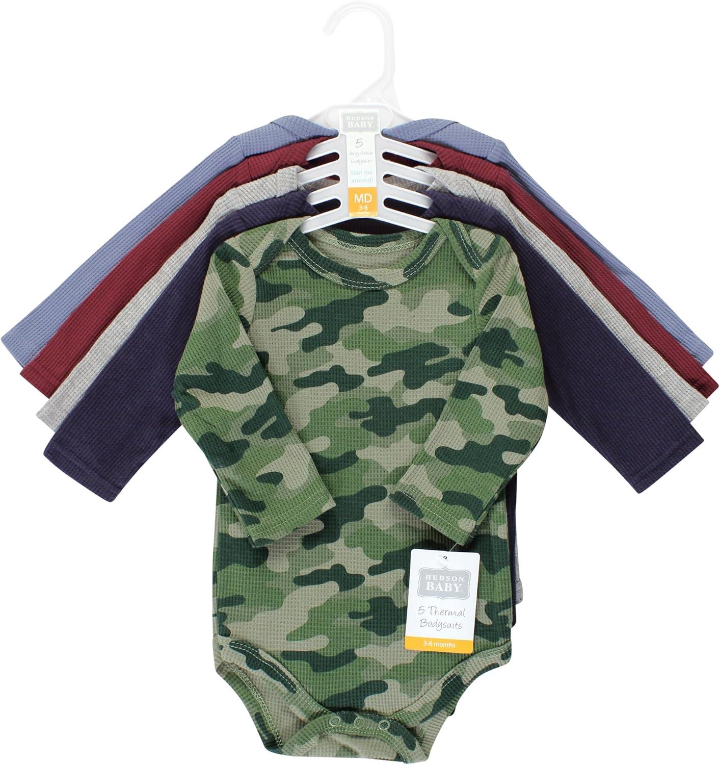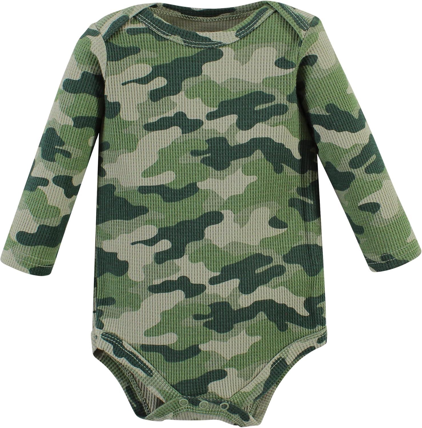 Hudson Baby unisex-baby Thermal Long Sleeve Bodysuits(Basic Camo)