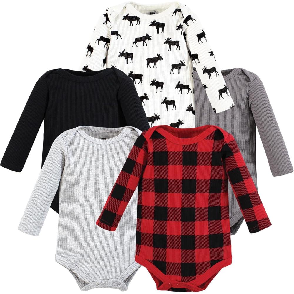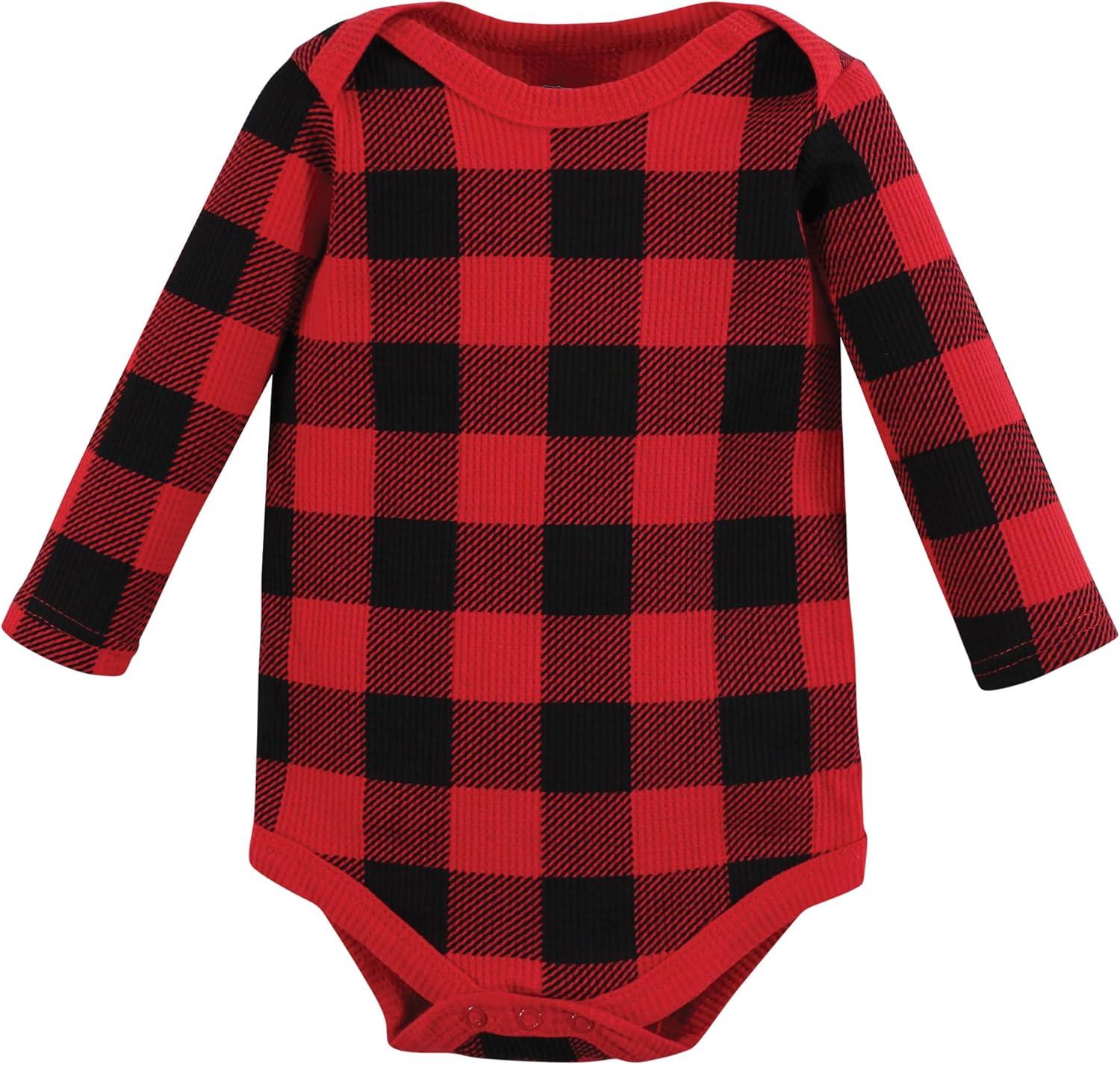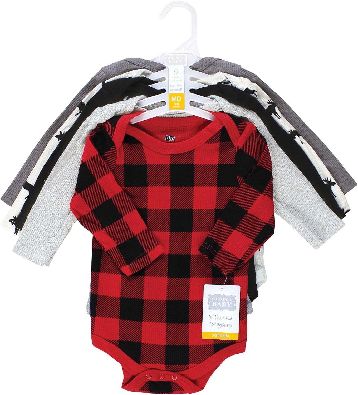 Hudson Baby unisex-baby Thermal Long Sleeve Bodysuits(Buffalo Plaid Moose)