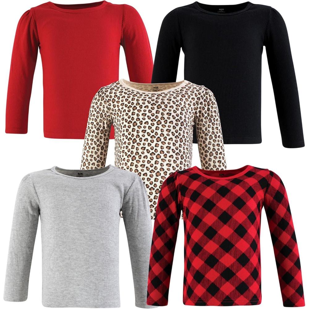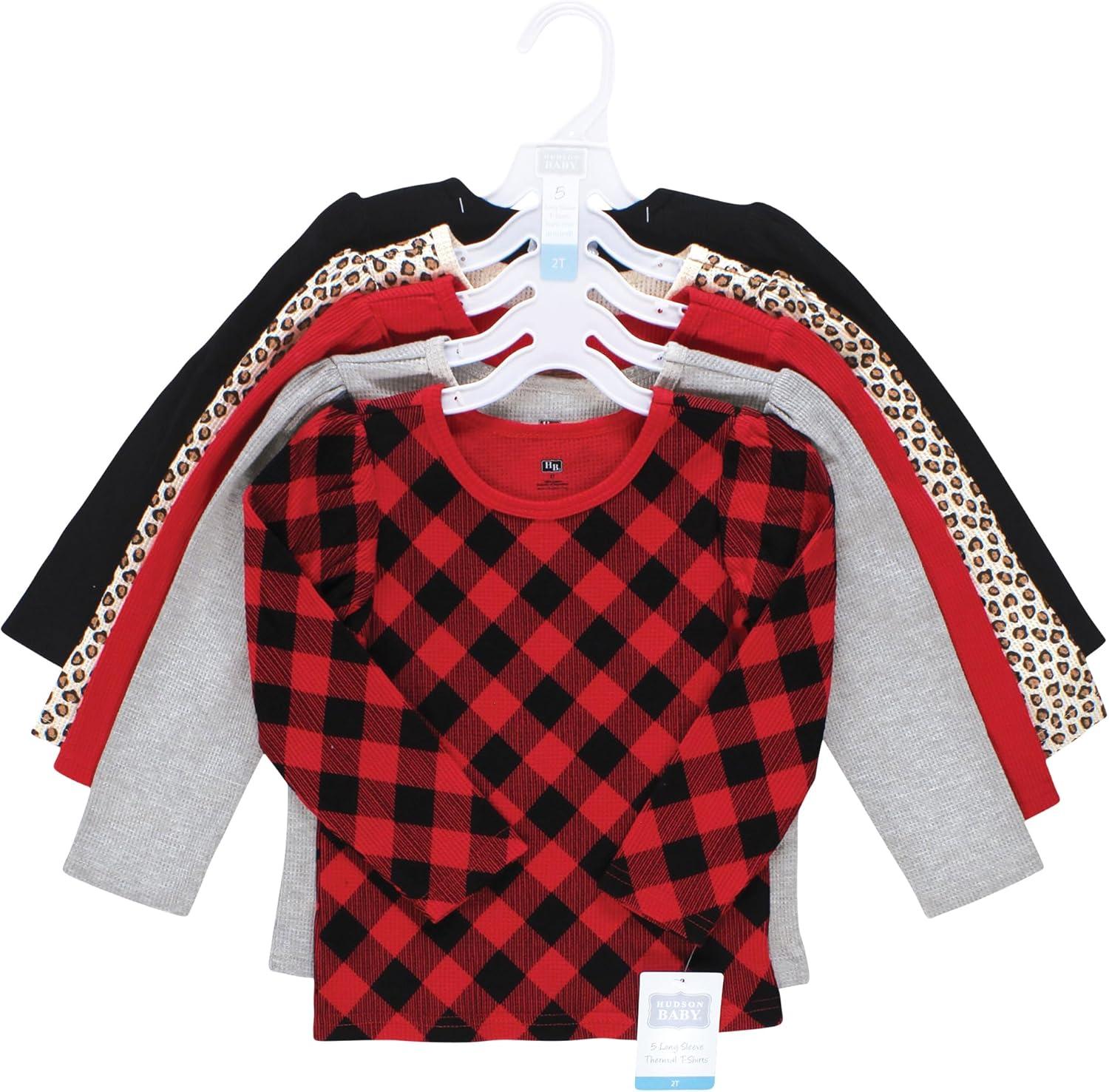 Hudson Baby Unisex Baby Thermal Long Sleeve Tees 5pk(Buffalo Plaid/Leopard)