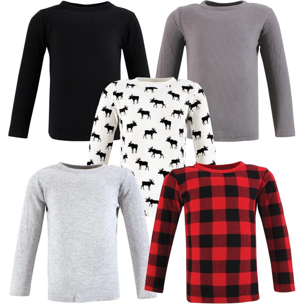 Hudson Baby Unisex Baby Thermal Long Sleeve Tees 5pk(Buffalo Plaid Moose)