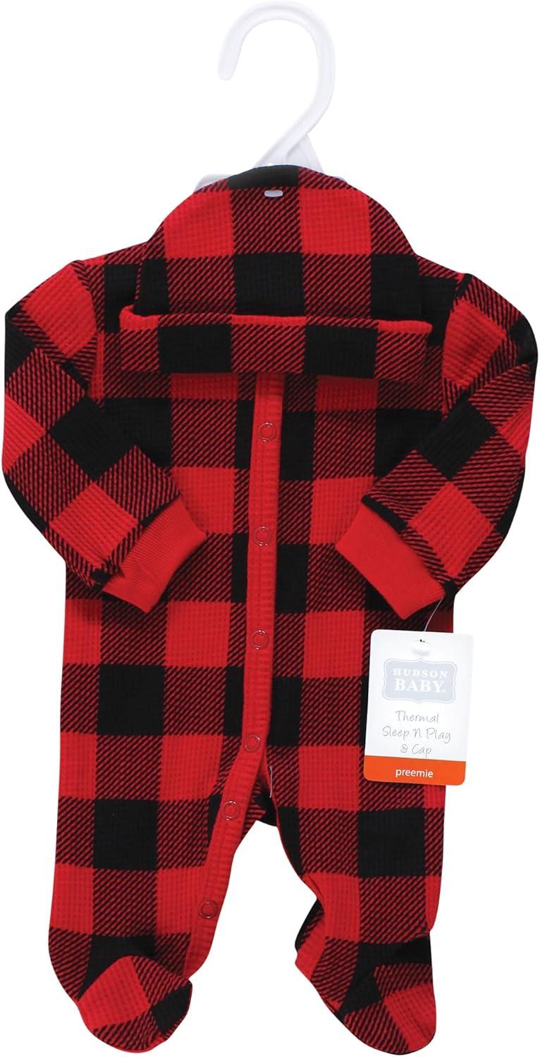 Hudson Baby Unisex Baby Thermal Preemie Sleep and Play and Cap(Buffalo Plaid)