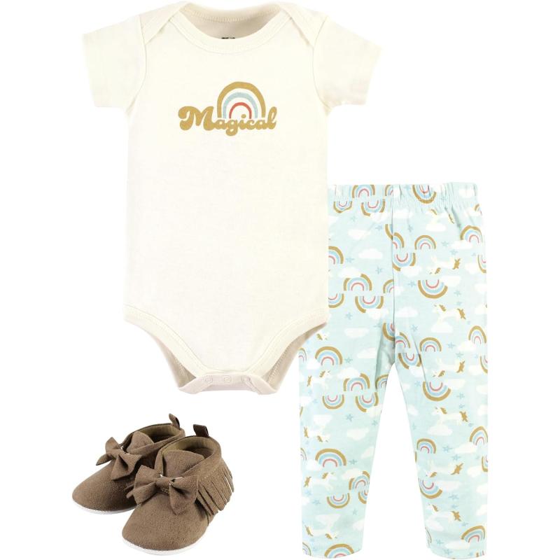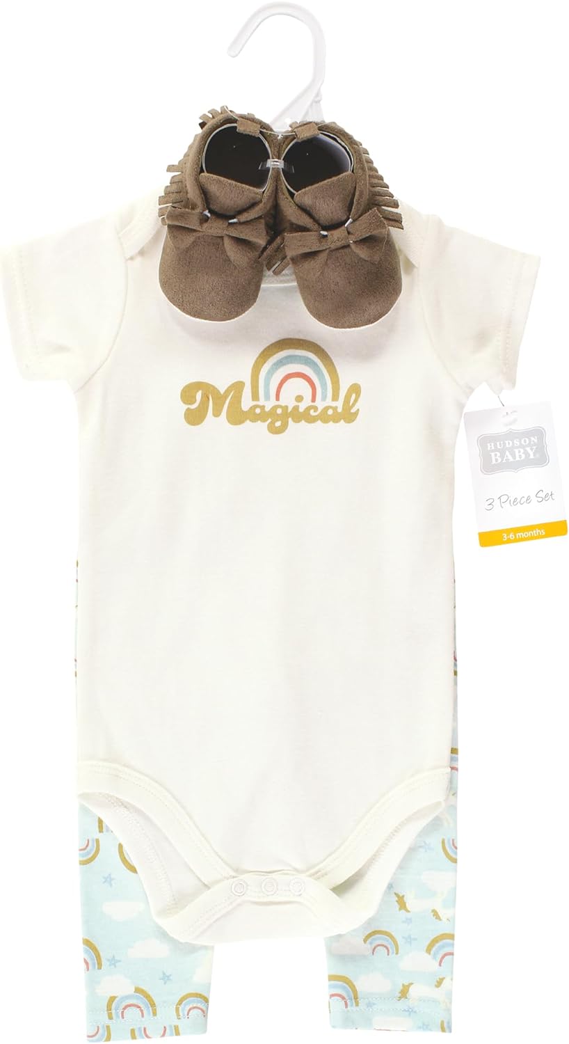 Hudson Baby Unisex Baby Unisex Baby Cotton Bodysuit, Pant and Shoe Set, Magical Rainbow, 0-3 Months