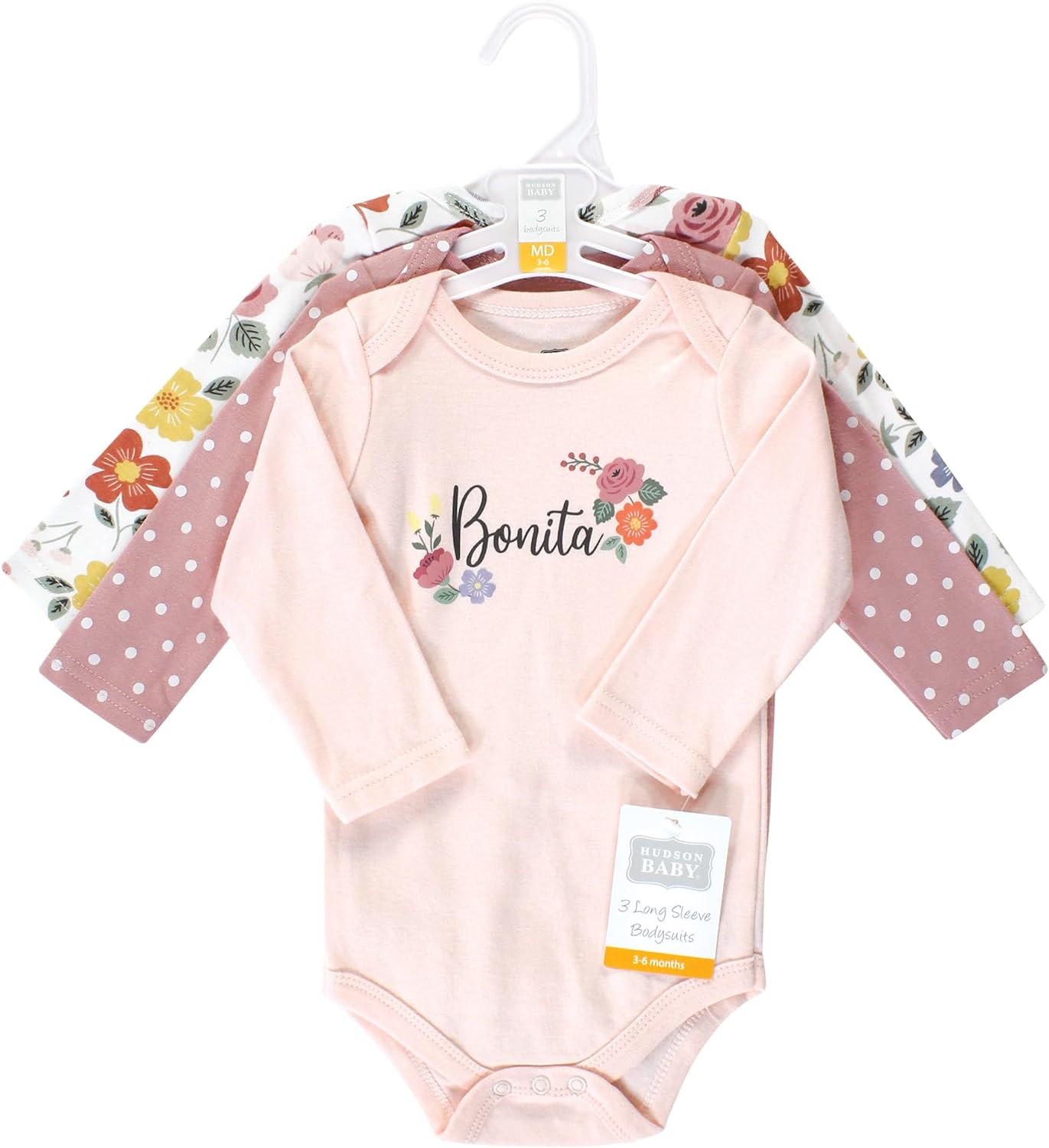 Hudson Baby Unisex Baby Unisex Baby Cotton Long-sleeve Bodysuits, Bonita, 9-12 Months(Bonita 3 Pack)