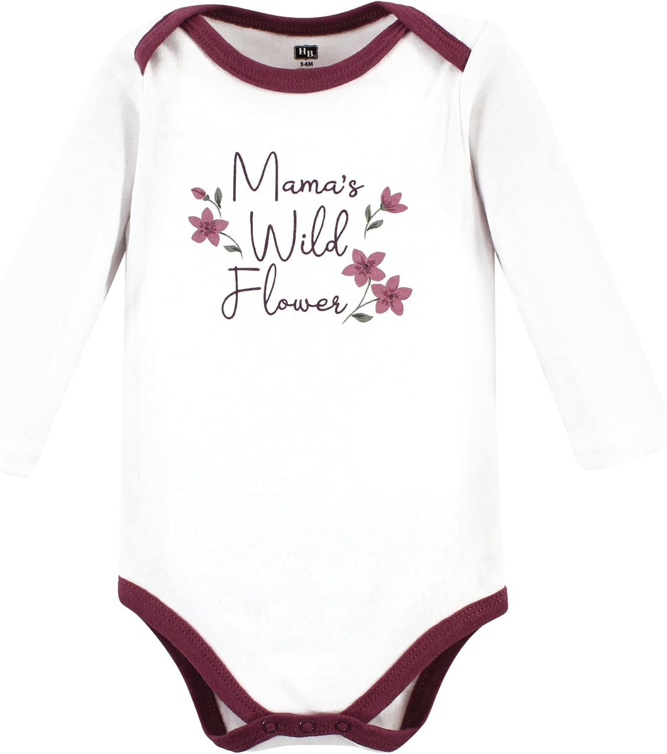 Hudson Baby Unisex Baby Unisex Baby Cotton Long-sleeve Bodysuits, Plum Wildflower, 18-24 Months(Plum Wildflower 5 Pack)