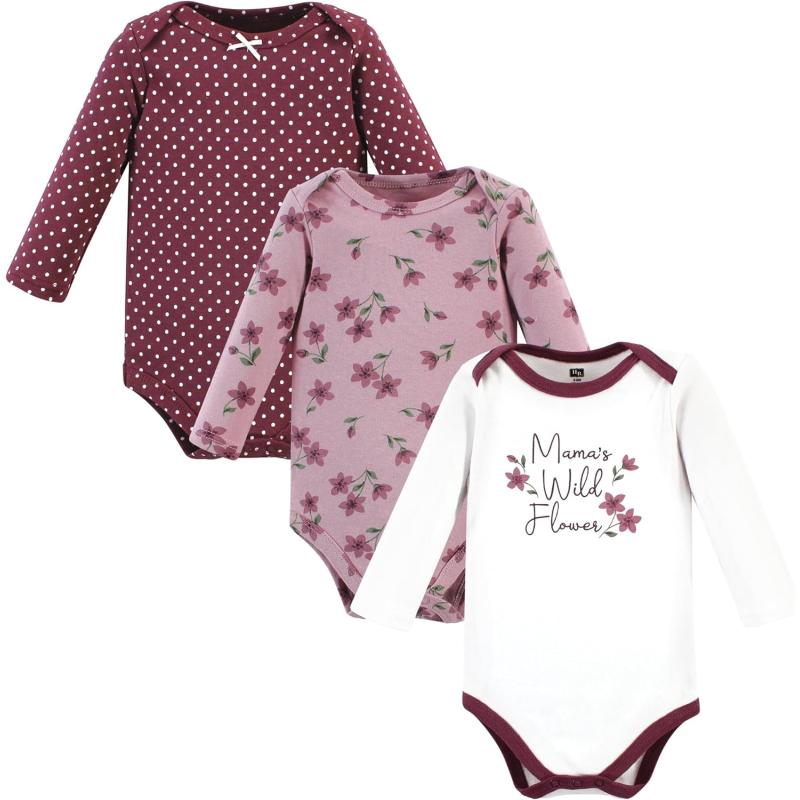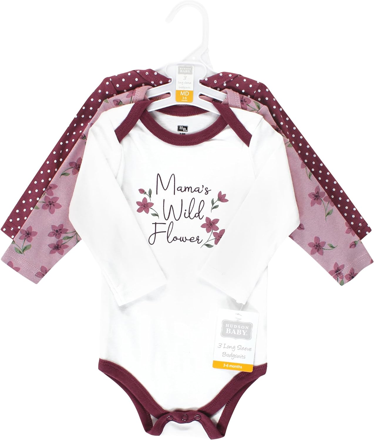 Hudson Baby Unisex Baby Unisex Baby Cotton Long-sleeve Bodysuits, Plum Wildflower, 18-24 Months(Plum Wildflower 3 Pack)