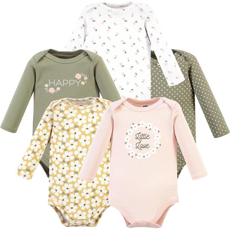 Hudson Baby Unisex Baby Unisex Baby Cotton Long-sleeve Bodysuits, Sage Floral Wreath, 3-6 Months(Sage Floral Wreath 5 Pack)